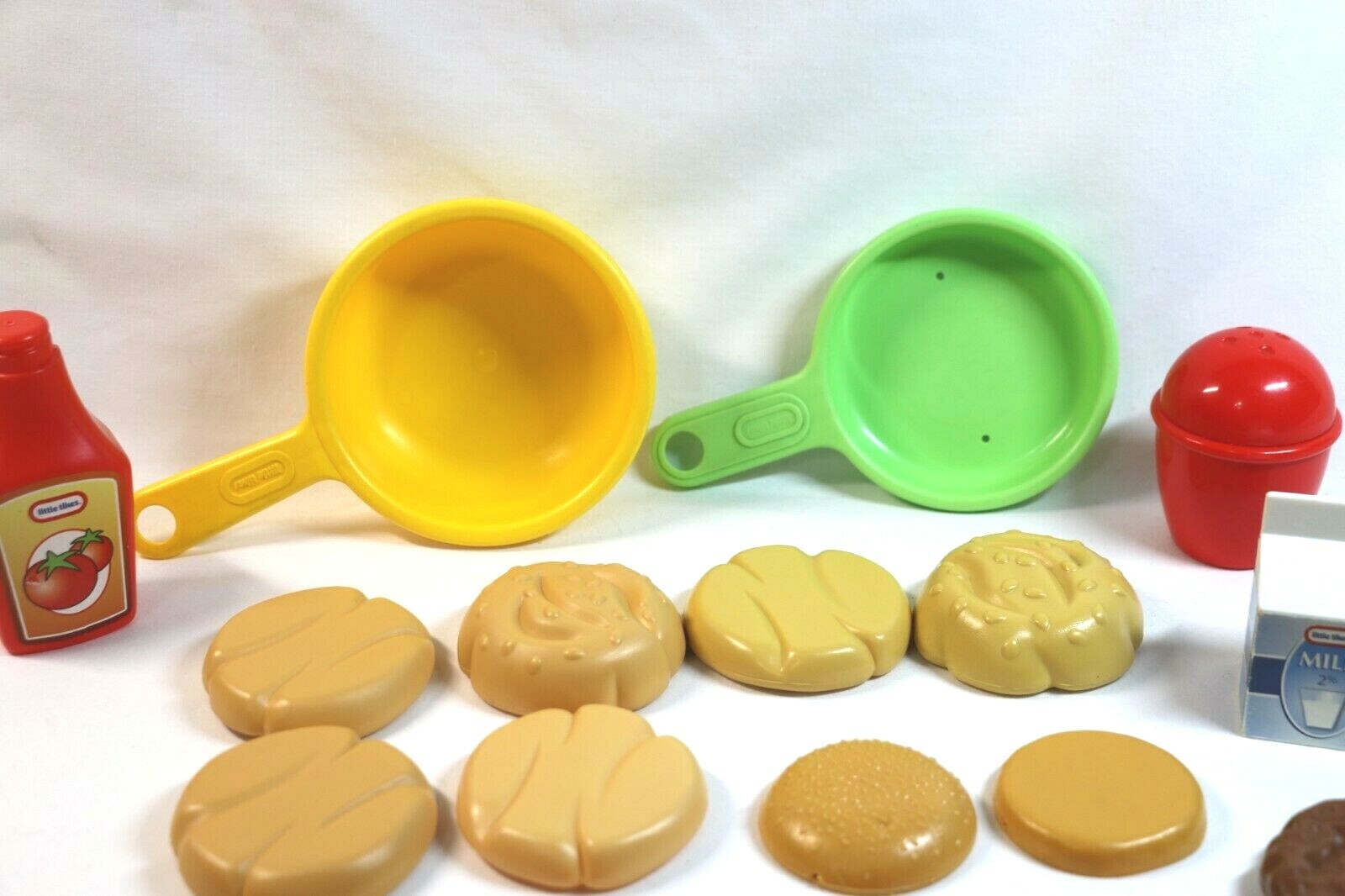 Little Tikes Vintage Kitchen Pretend Play Food Hamburger Pan Ketchup Salt shaker