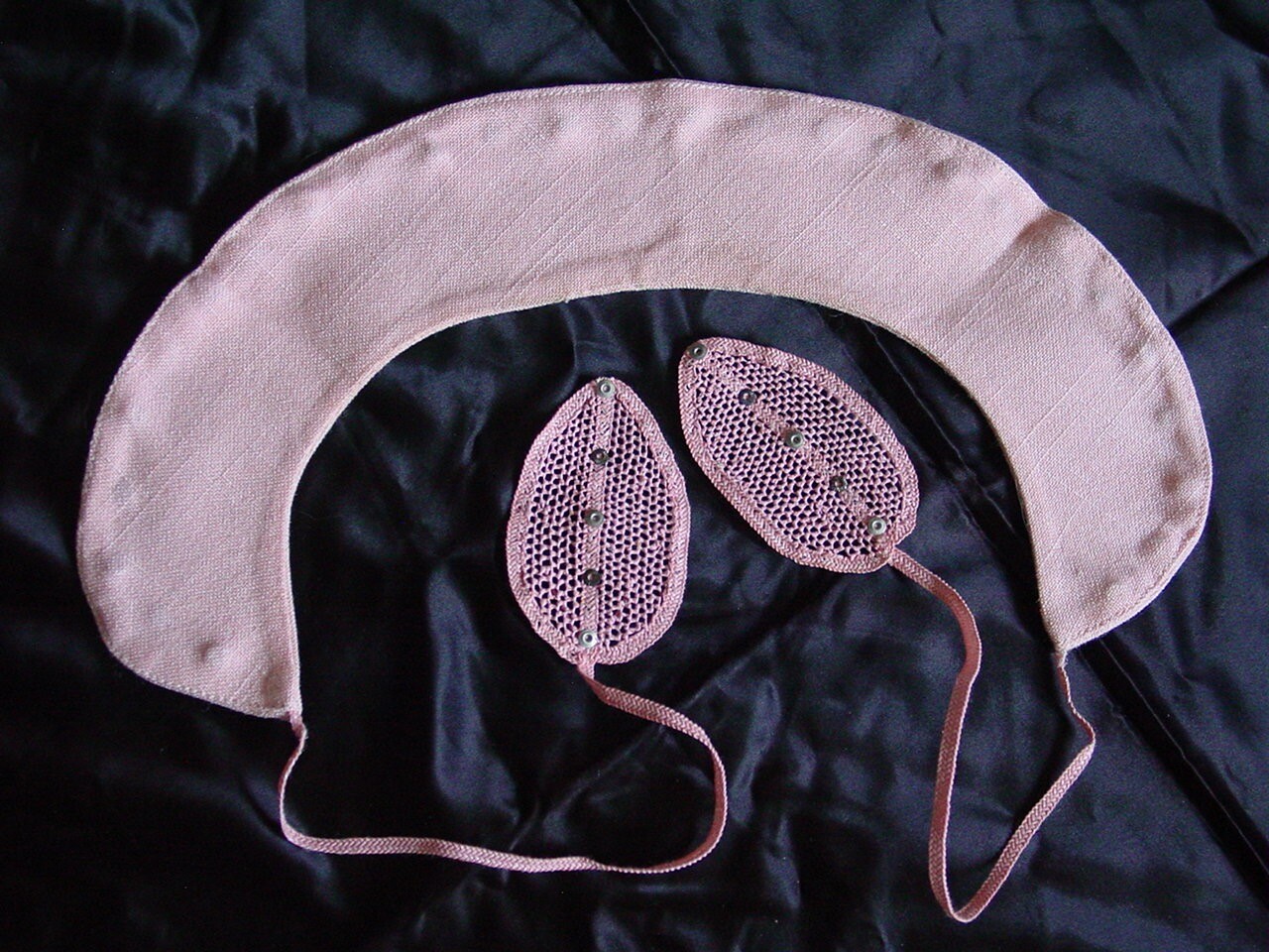 как выглядит Vntg1950s Pink Linen Faux Pearl- Rhinestone Dress,Sweater Choker Necklace,Collar фото