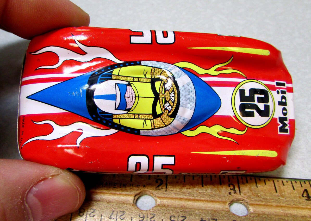 Vintage Tin Toy Red Race Car made in Japan, Tin Lithograph racecar, NEW