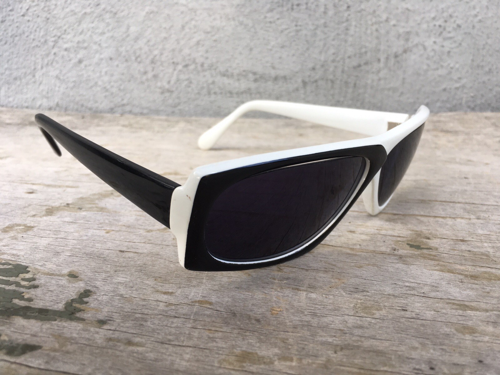 AUTHENTIC VINTAGE White Black Mod 1970 s 80 s Ladies Sunglasses MADE IN KOREA