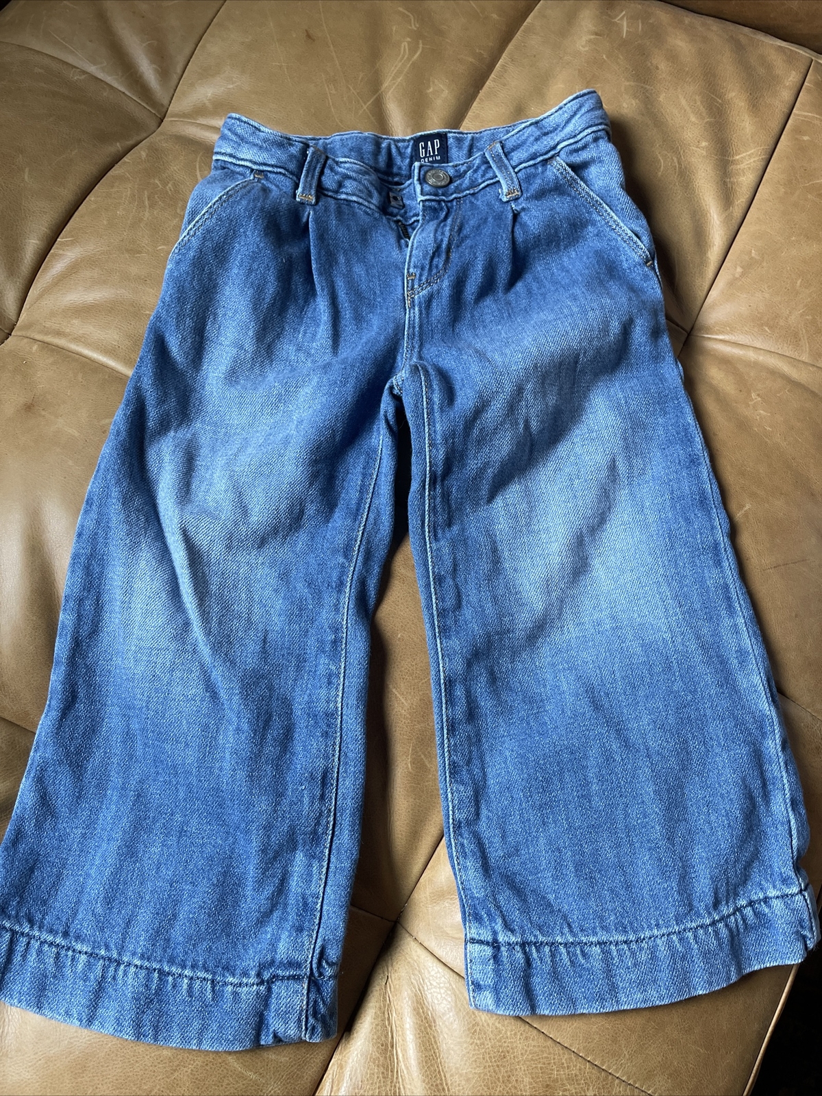 Gap Kids High Rise Destructed Wide-Leg Crop Jeans Childrens Youth Size 5 Girls