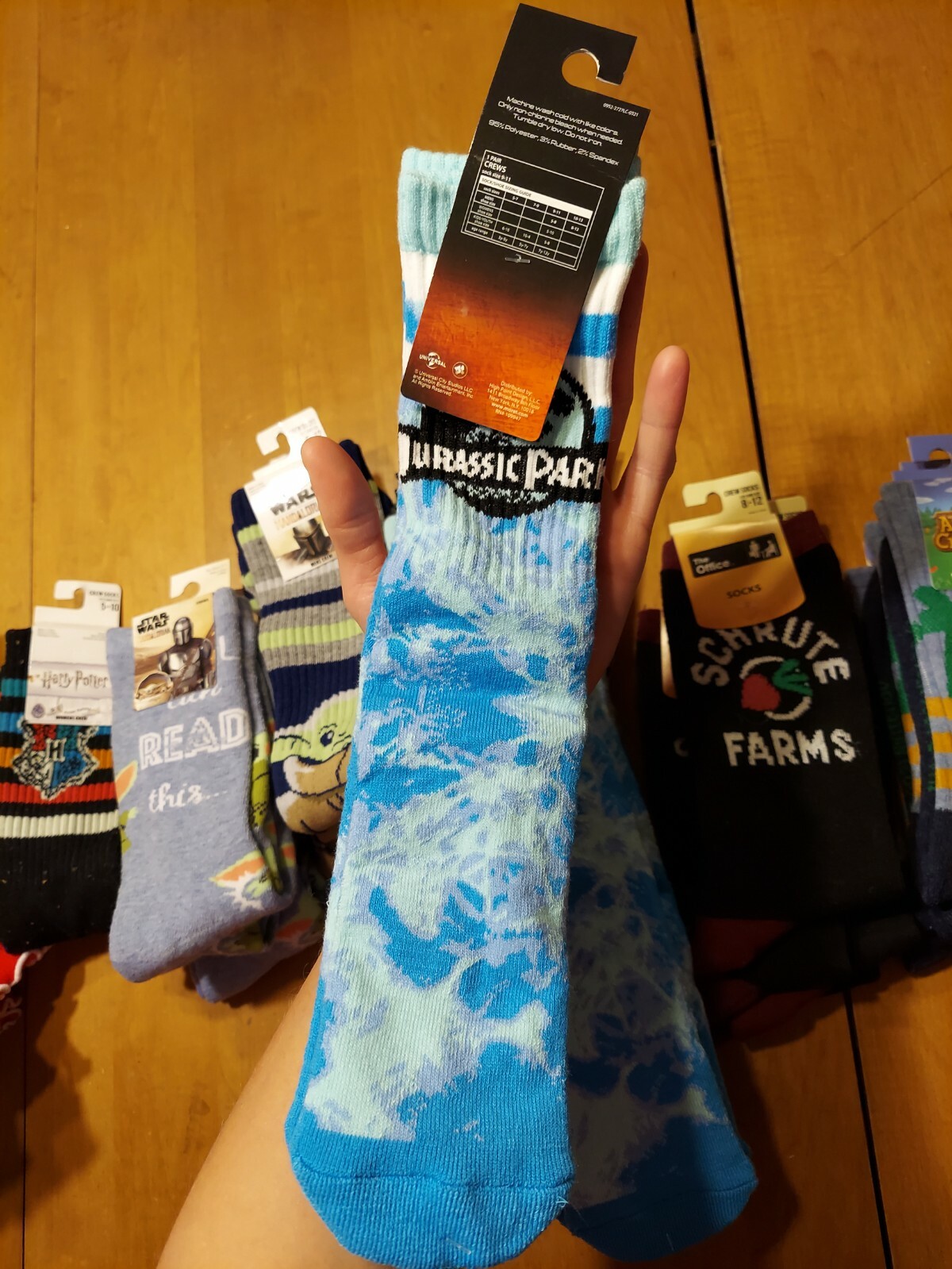 Jurassic World Shoe Size 9-11 Crew Socks Jurassic Park Long Blue White Tiedye