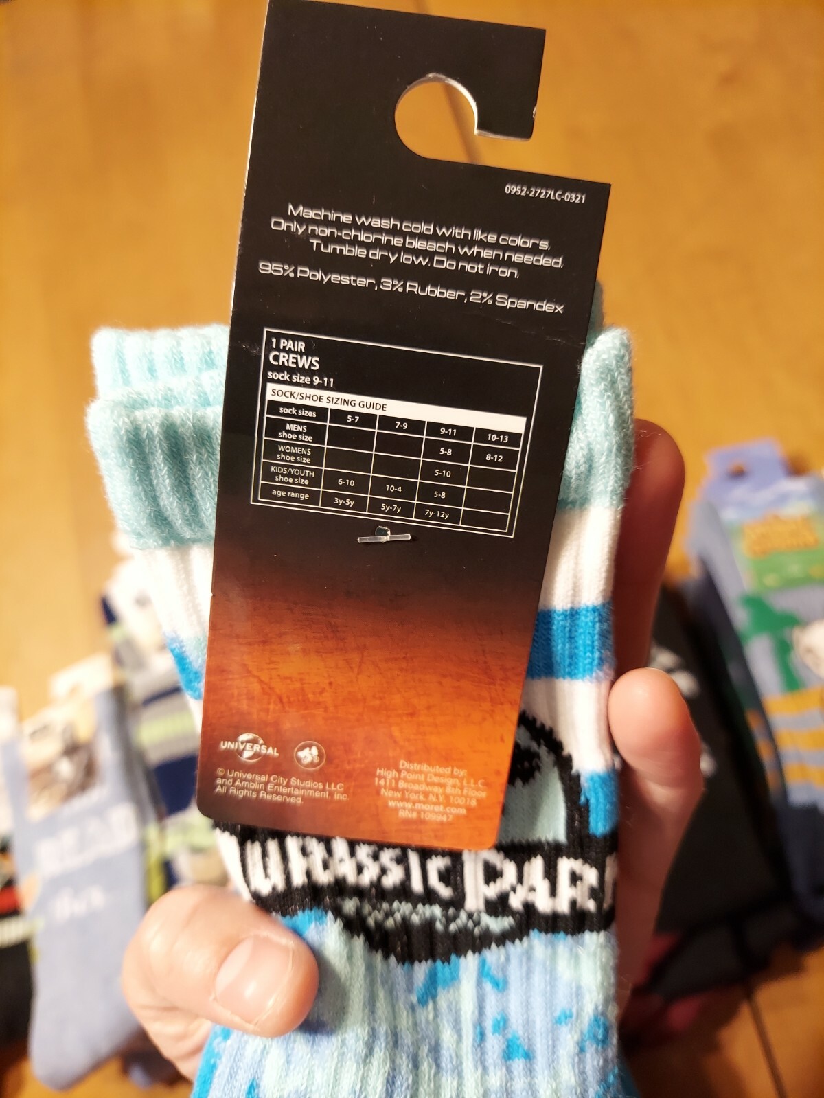 как выглядит Jurassic World Shoe Size 9-11 Crew Socks Jurassic Park Long Blue White Tiedye фото