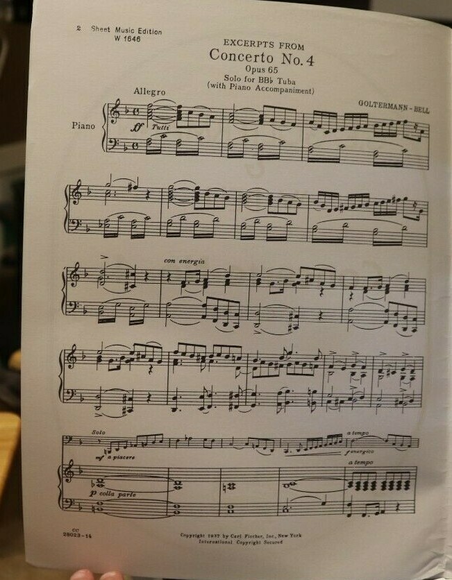 Tuba Piano Concerto No.4 Excerpts by G E Goltermann W Bell New Out of print
