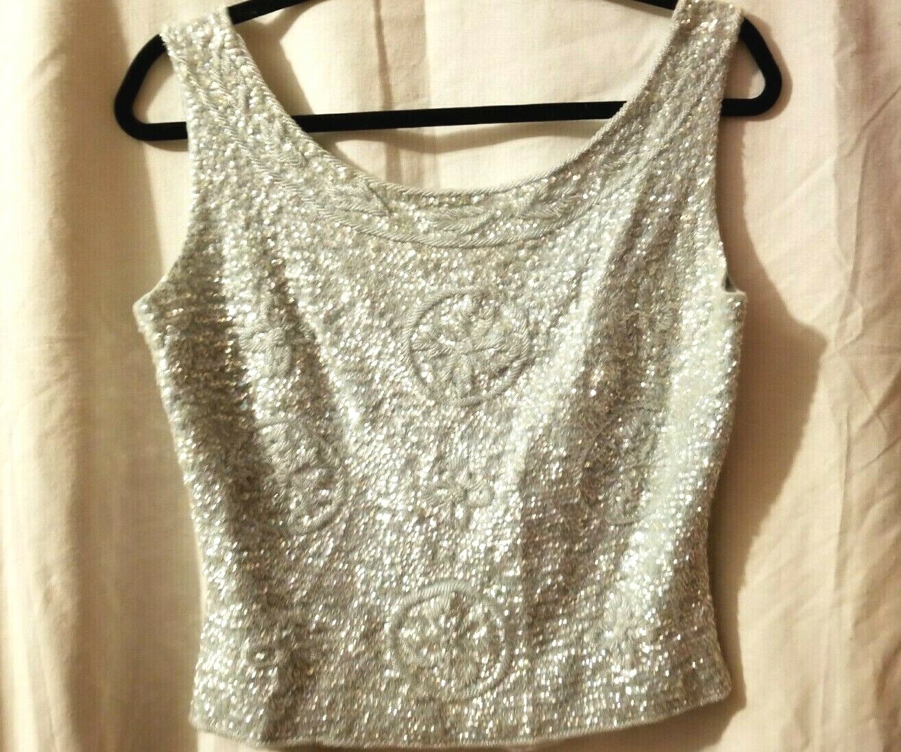 как выглядит Vintage Beaded Sequined Top Shirt Made in Hong Kong early 70