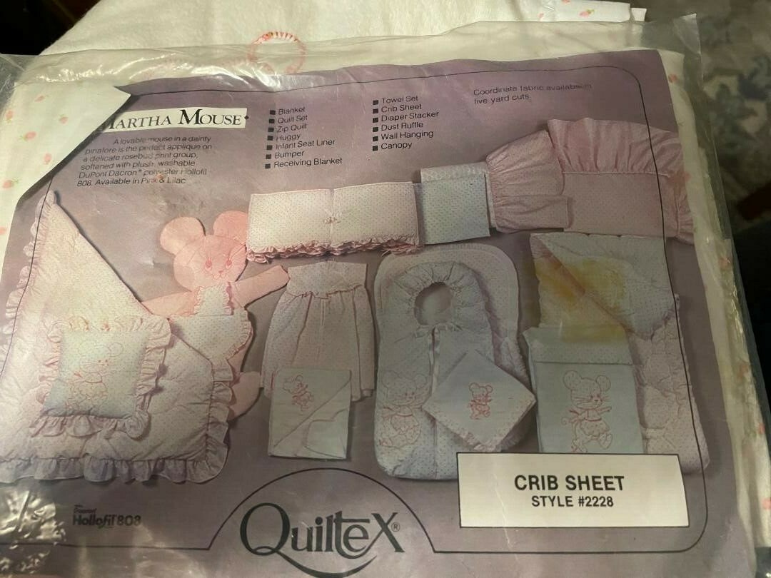 как выглядит Quiltex Martha Mouse crib Sheet white with little pink flowers фото
