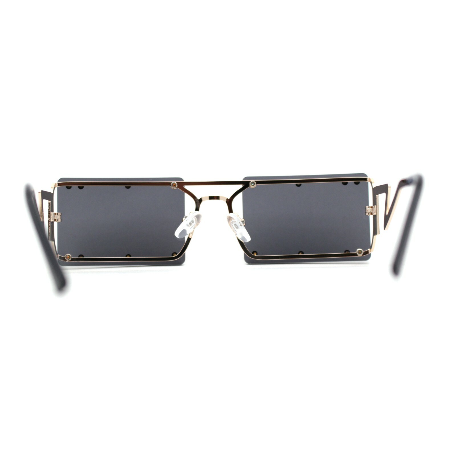 Metal Stud Rimless Rectangular Unique Metal Rim Sunglasses