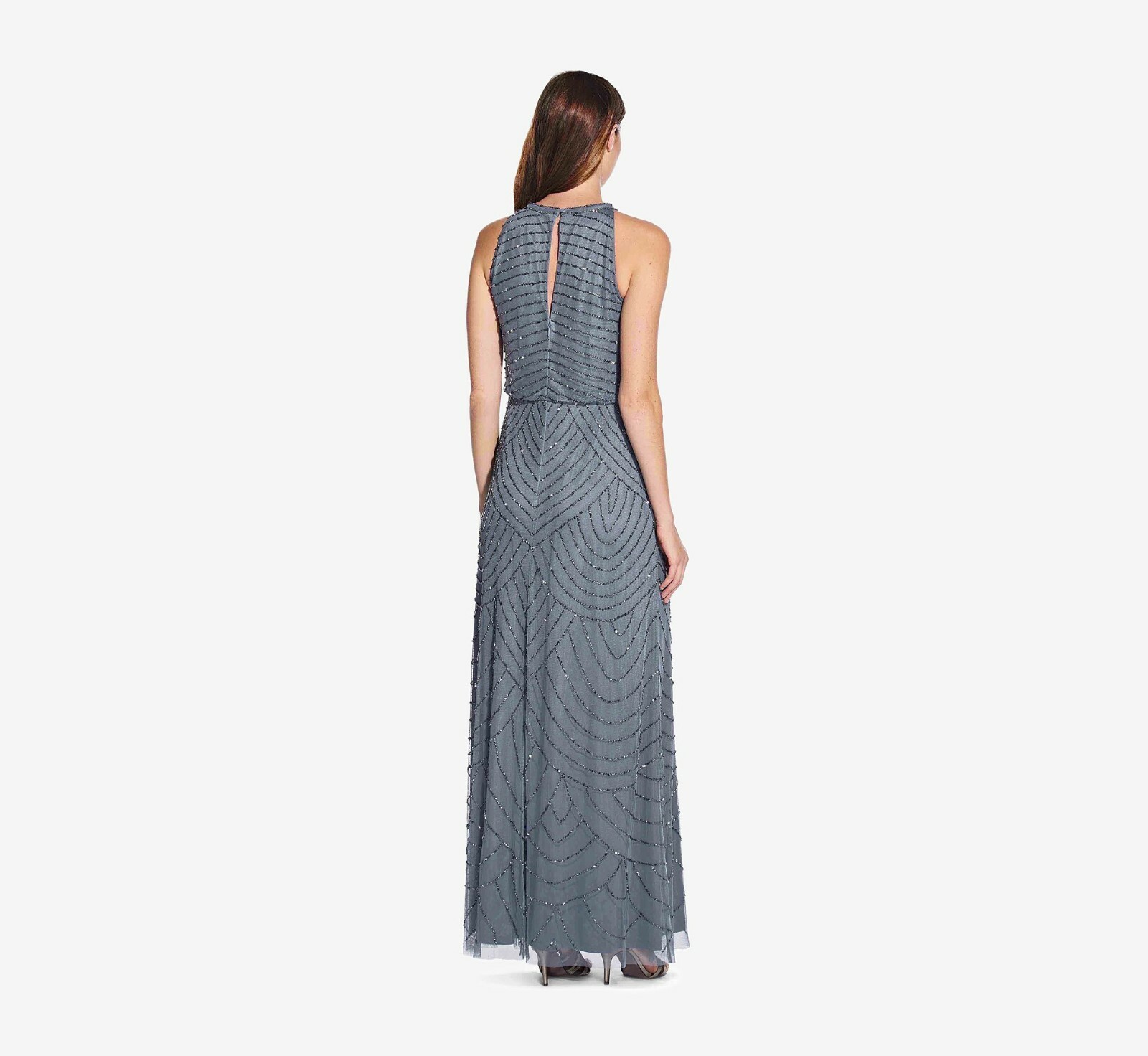 как выглядит ADRIANNA PAPELL 191914100 HALTER NECK BLOUSON BEADED GOWN Gray BRIDESMIAD фото
