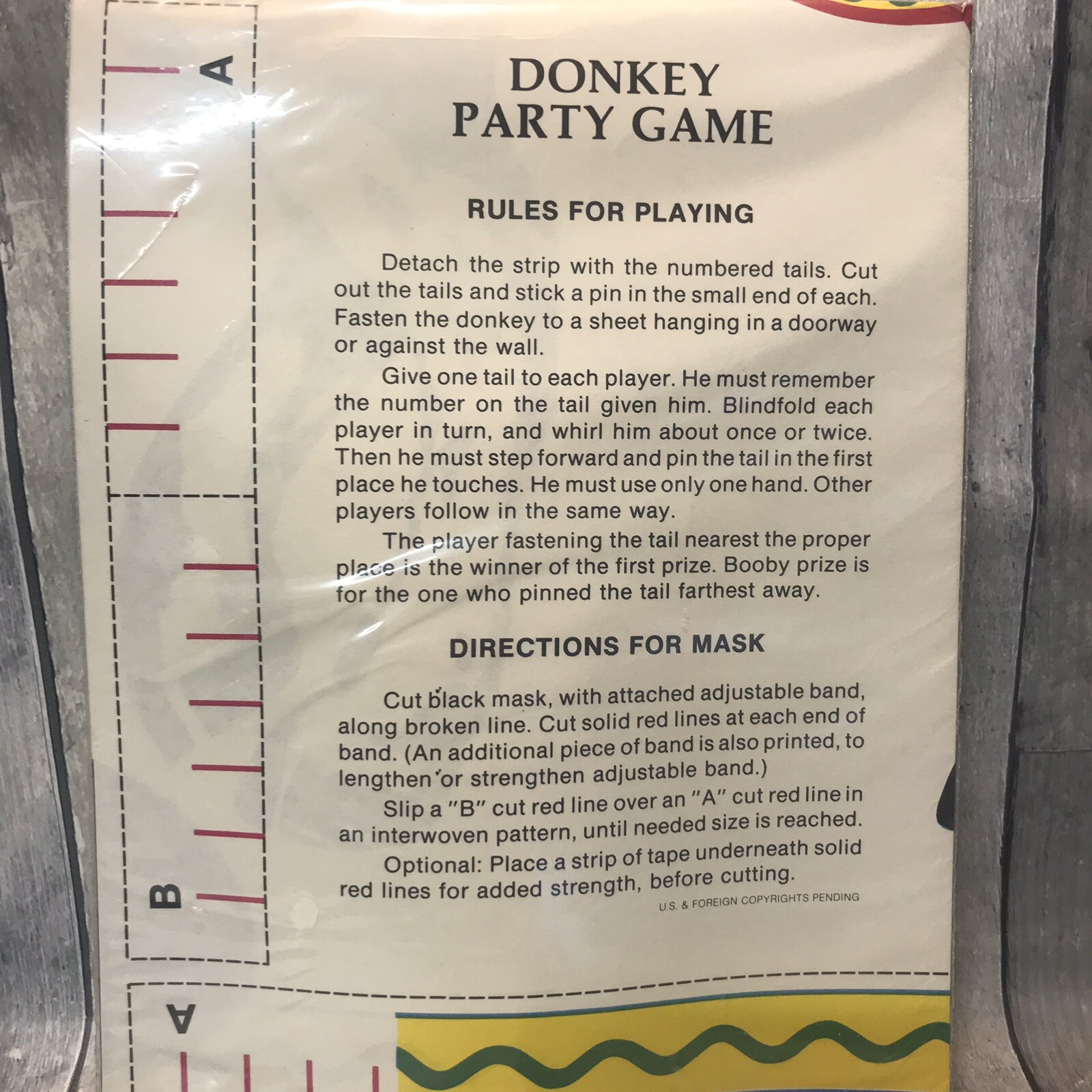 Vintage Pin the Tail on the Donkey Game Sealed With Mask Party Time PA USA