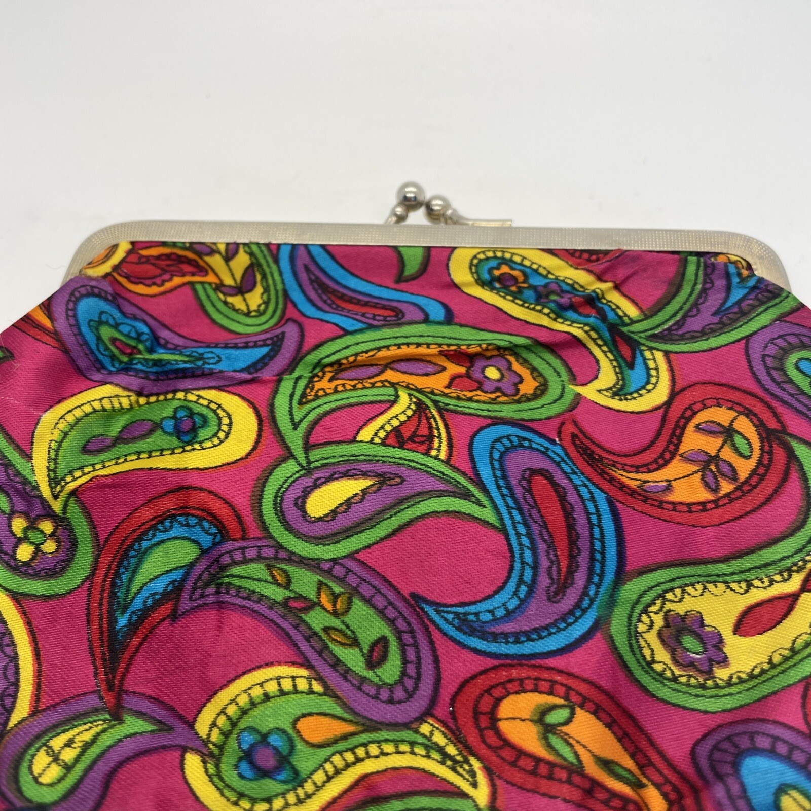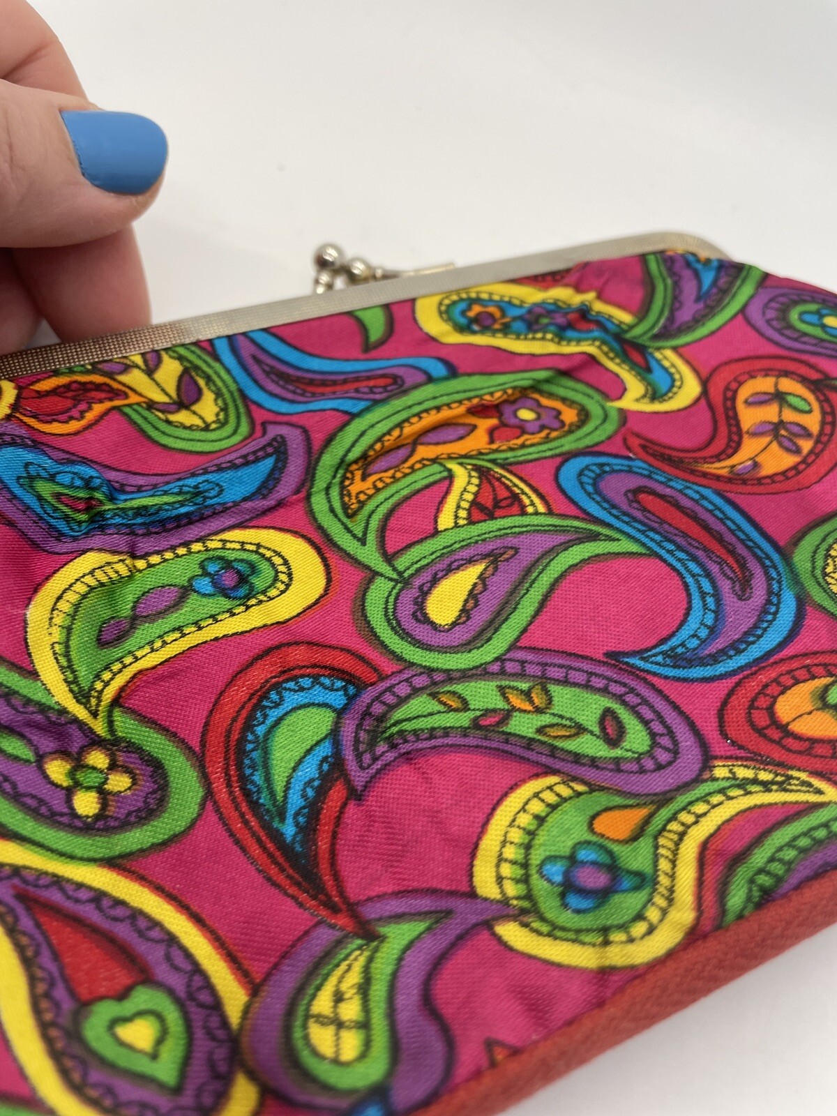 как выглядит Vintage Small Snap Clutch With Bottom Zip Taiwan Bright Colors Retro Flowers фото