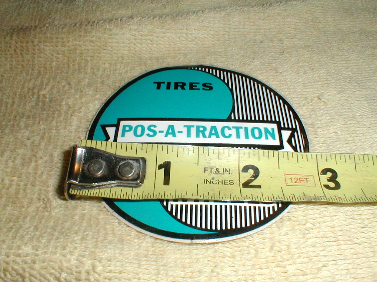 Pos-A-Traction Tires Wheels Vintage Vinyl Self Adhesive Decal 2 7/8 by 2 7/8