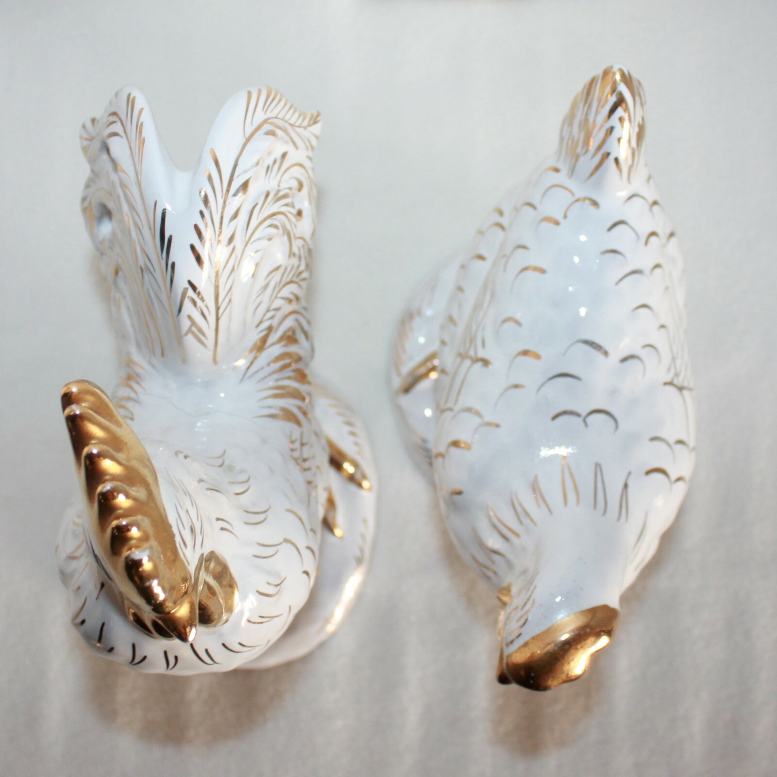 как выглядит White and Gold Rooster and Hen set - Clay Figurines - In excellent condition фото