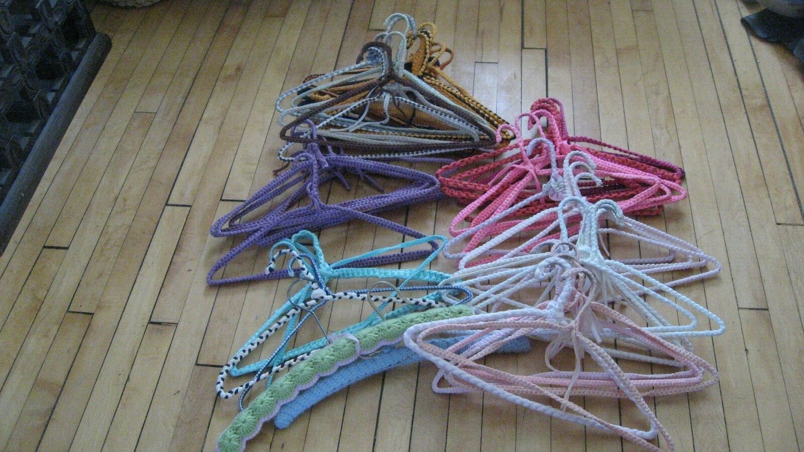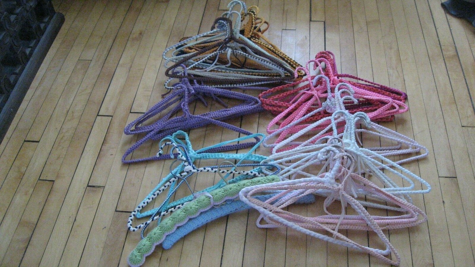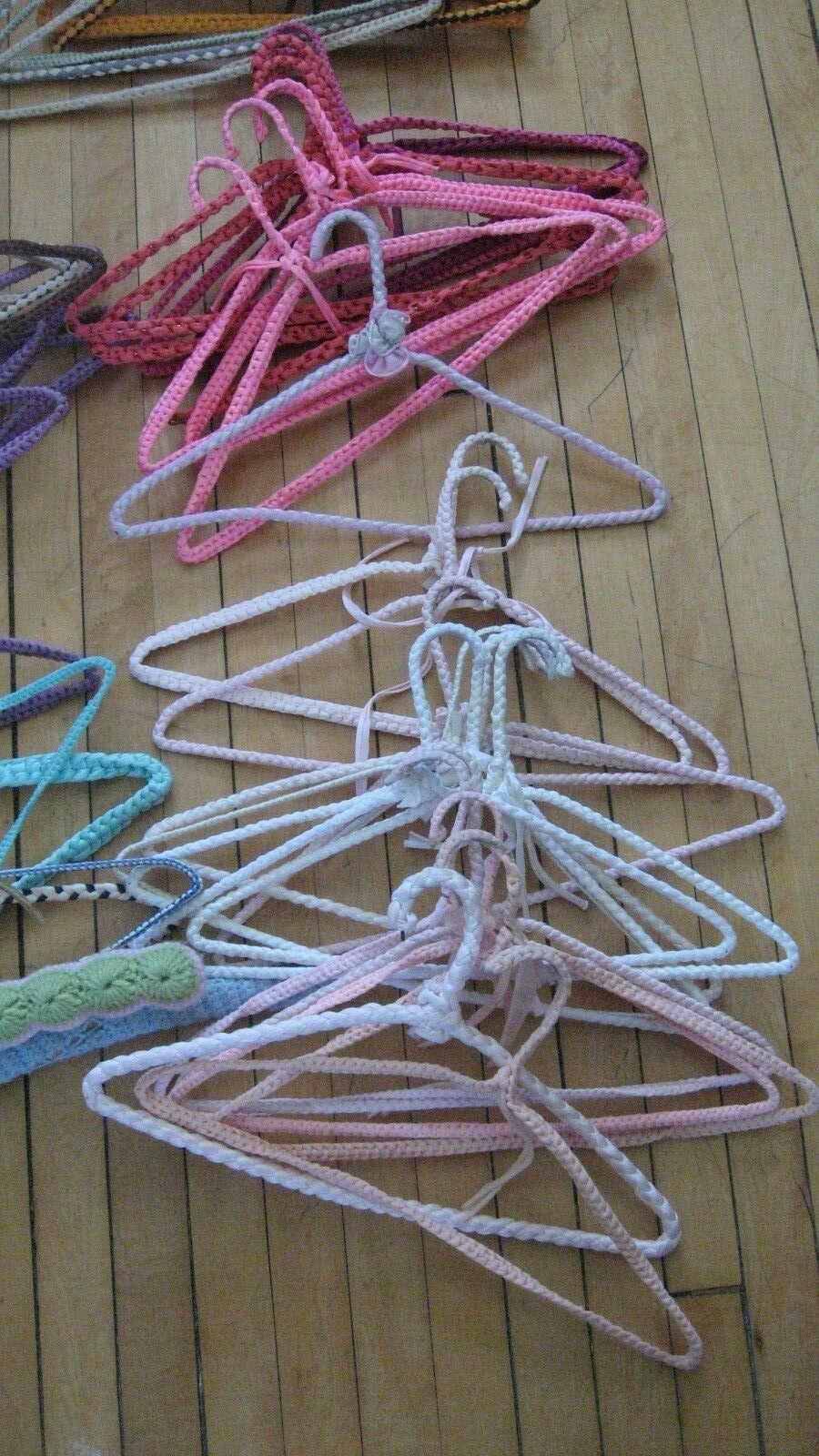 как выглядит Vintage 50s 60s Crochet Clothes Hangers Lot 51 Assorted Colors Hippie Boho MCM фото