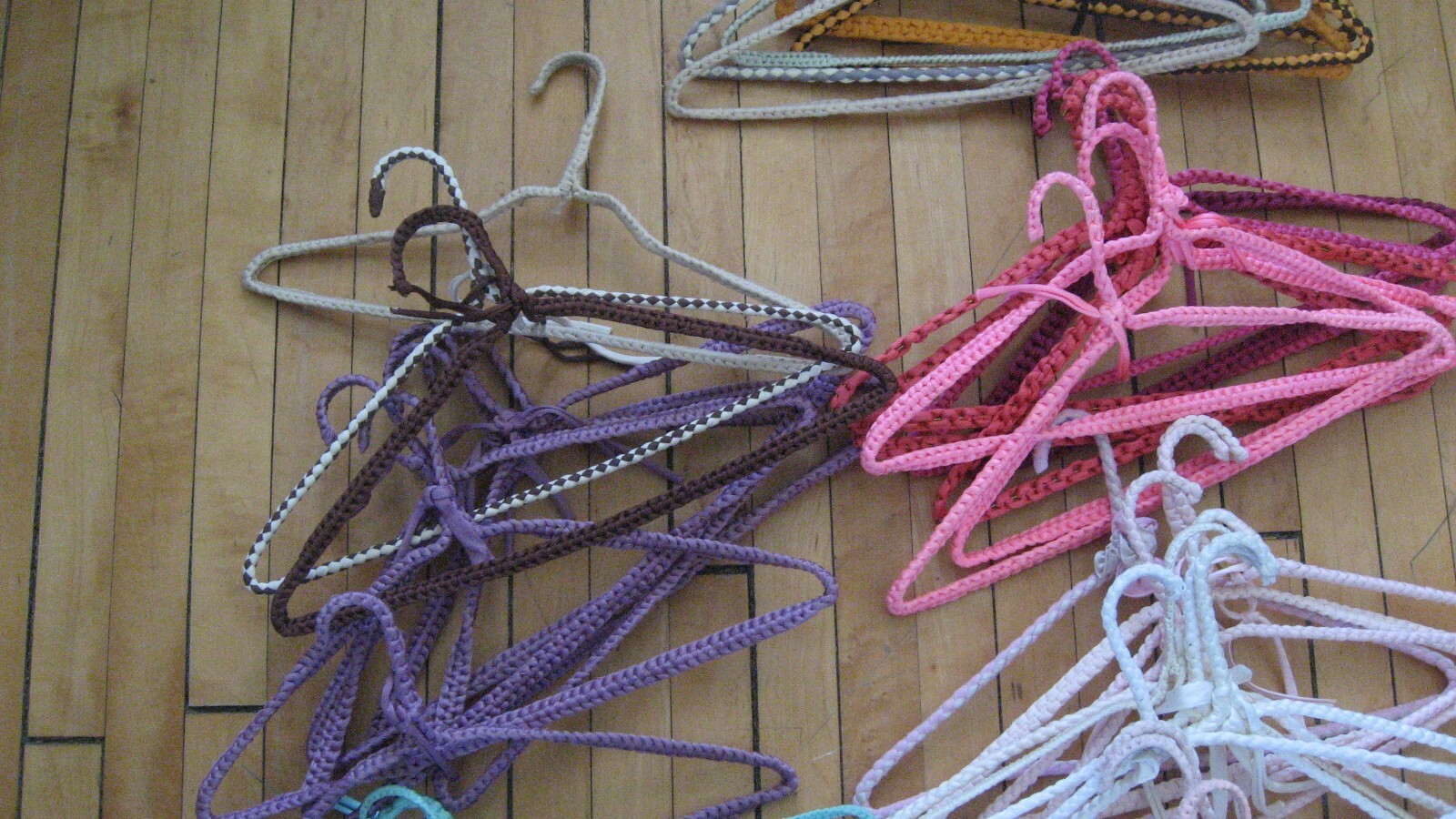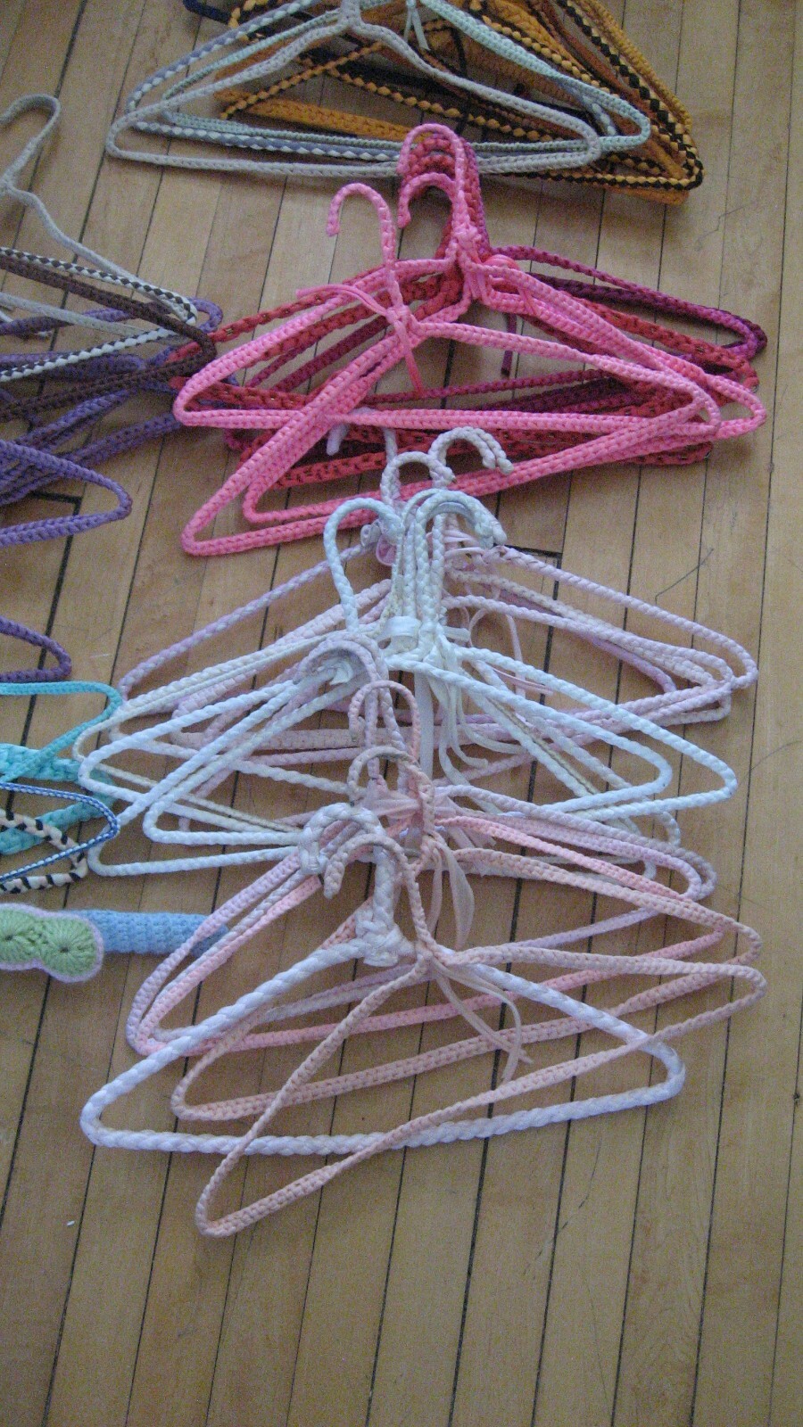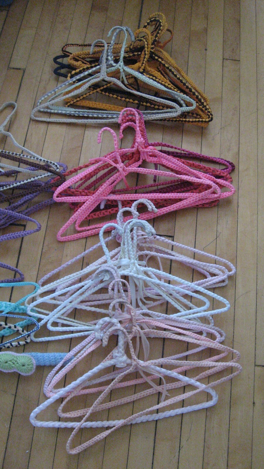 как выглядит Vintage 50s 60s Crochet Clothes Hangers Lot 51 Assorted Colors Hippie Boho MCM фото