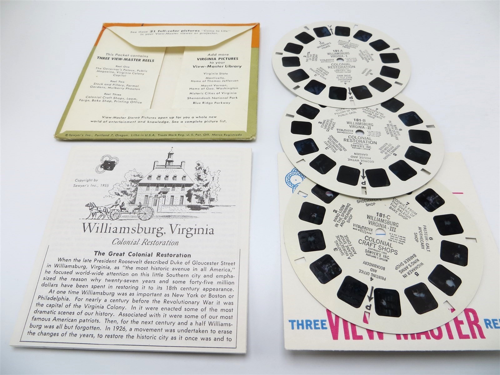 View-Master A813, Williamsburg Colonial Restoration Virginia, 3 Reel Set