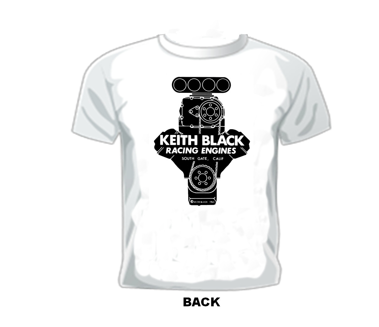 Vintage DRAG RACE T-shirt KEITH BLACK RACING ENGINES SOUTH GATE CALIFORNIA