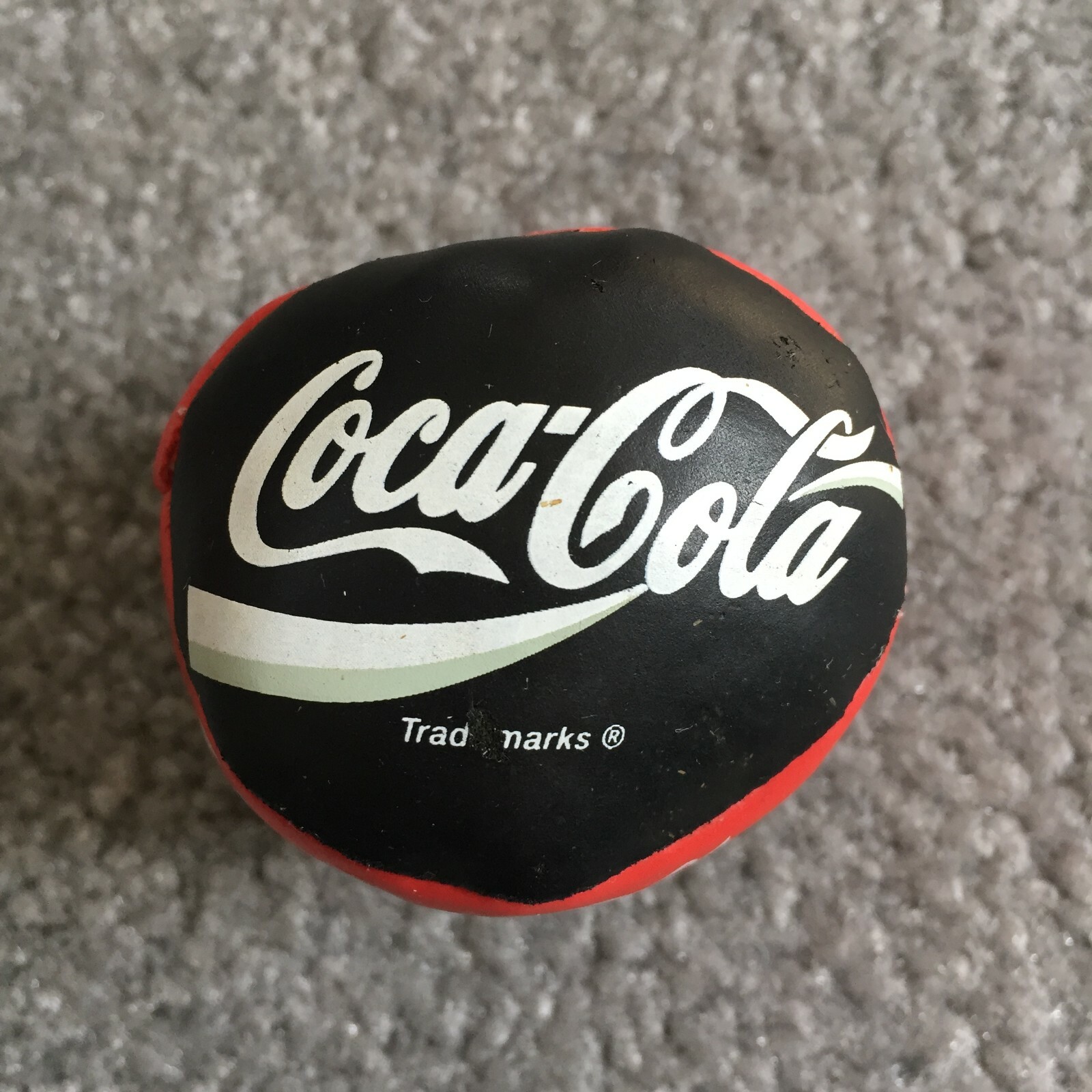• Vintage 1998 Official Coca Cola Logo Hacky Sack Beanbag Ball Red Black White Toy