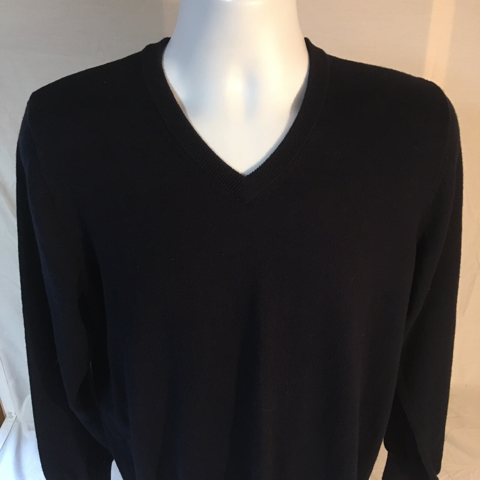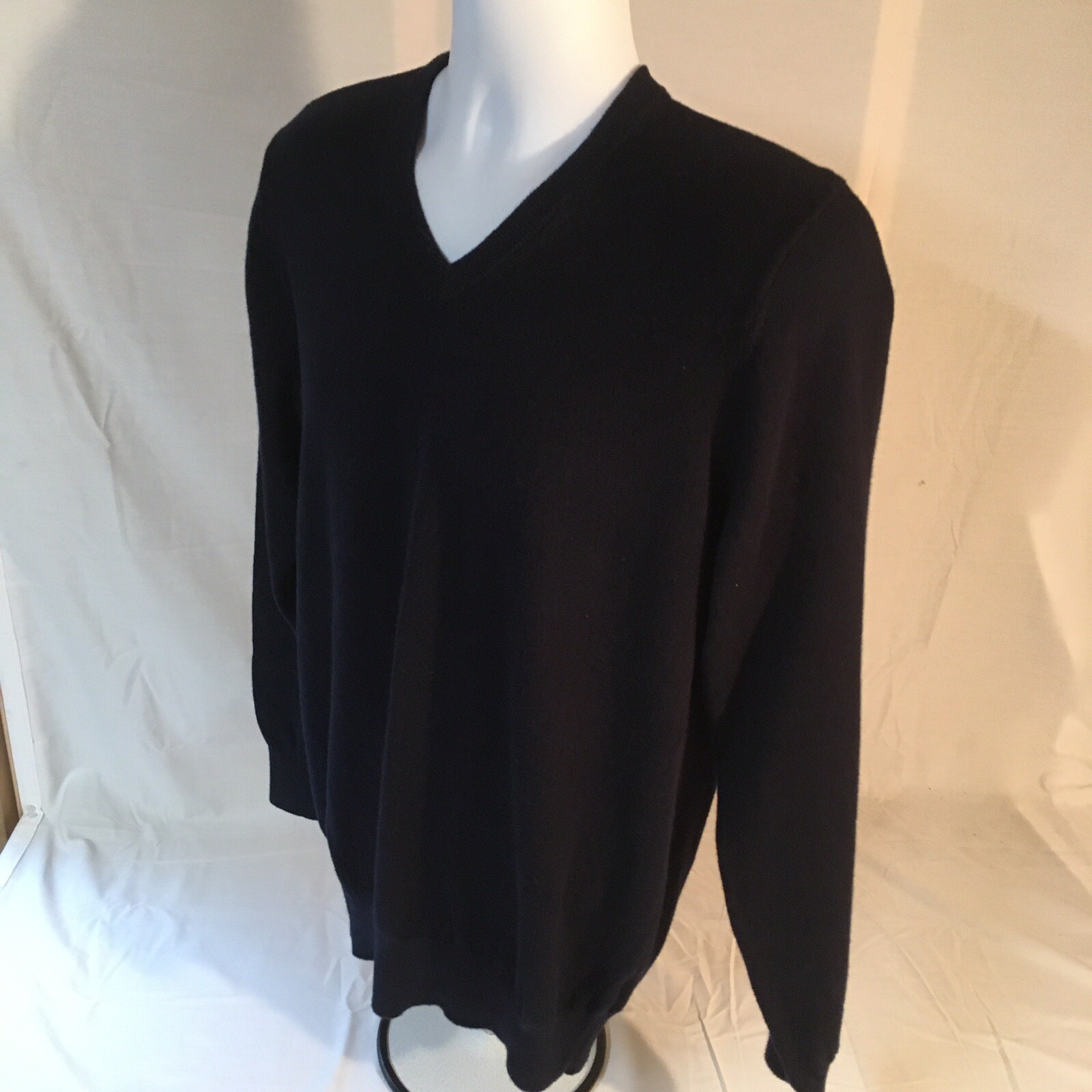 как выглядит LL Bean Mens V-Neck Sweater Blue Cotton Cashmere Blend Medium Long Sleeve FS фото