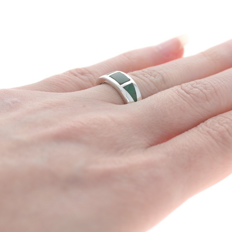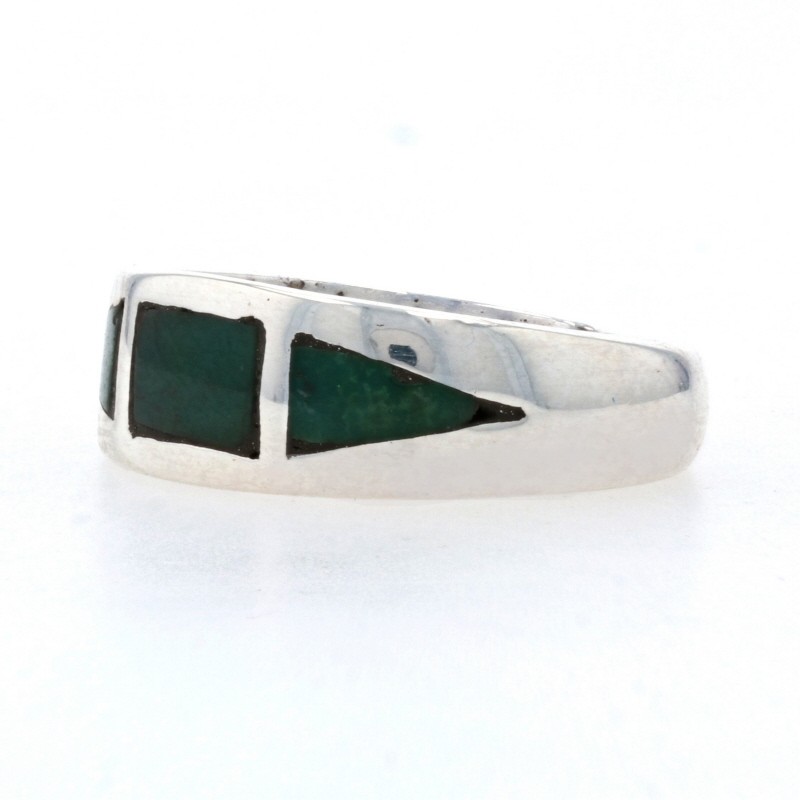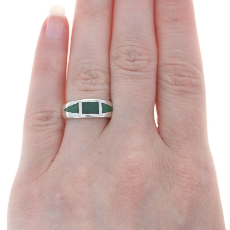 как выглядит Native American Green Turquoise Three-Stone Band Sterling Silver 925 Ring Size 5 фото