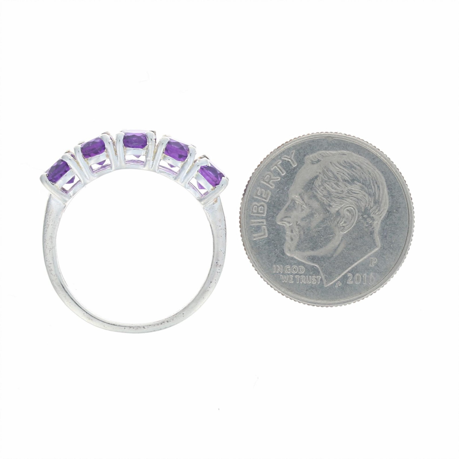 как выглядит Sterling Silver Amethyst Five-Stone Ring - 925 Oval Cut 1.50ctw фото
