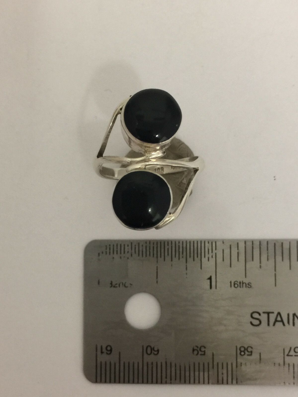 как выглядит Black Onyx Cabochon Ring Size 8 Sterling Silver фото
