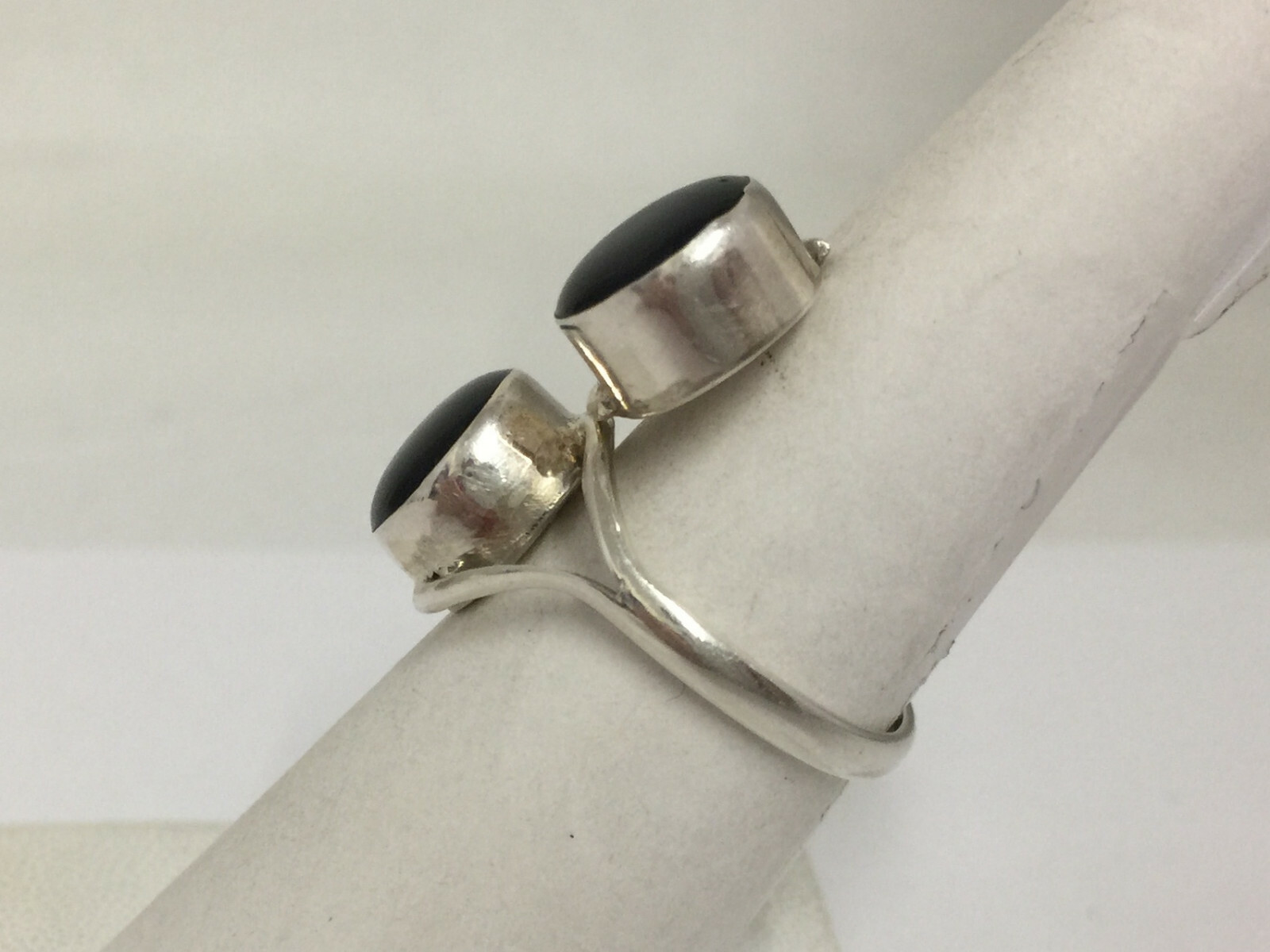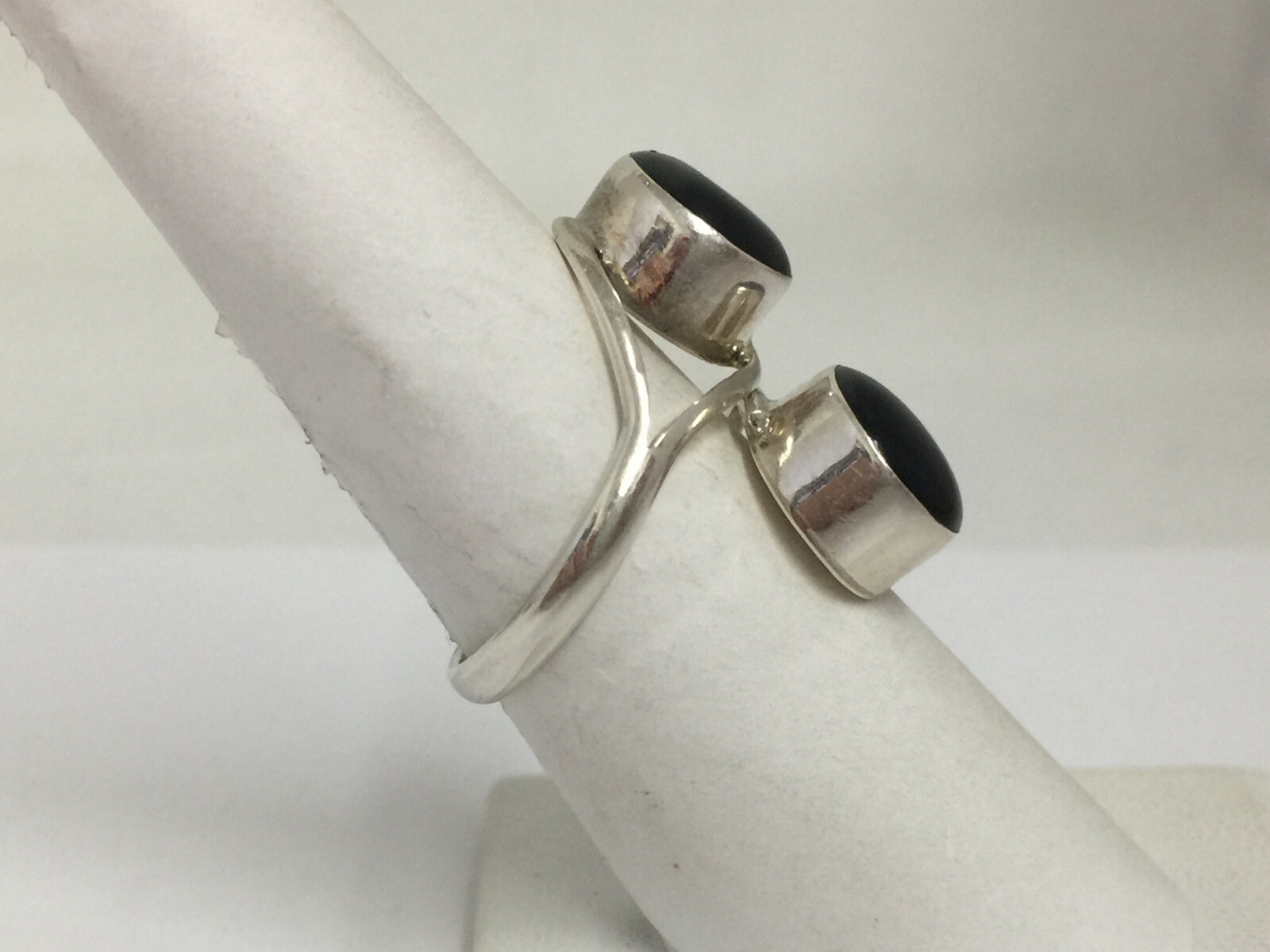 Black Onyx Cabochon Ring Size 8 Sterling Silver
