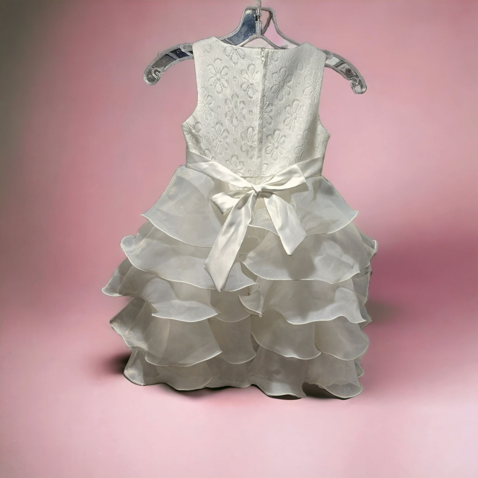 Girls Rhinestone Lace Tulle Ruffle Sleeveless V-Neck Tutu Dress Size 6 - 6x