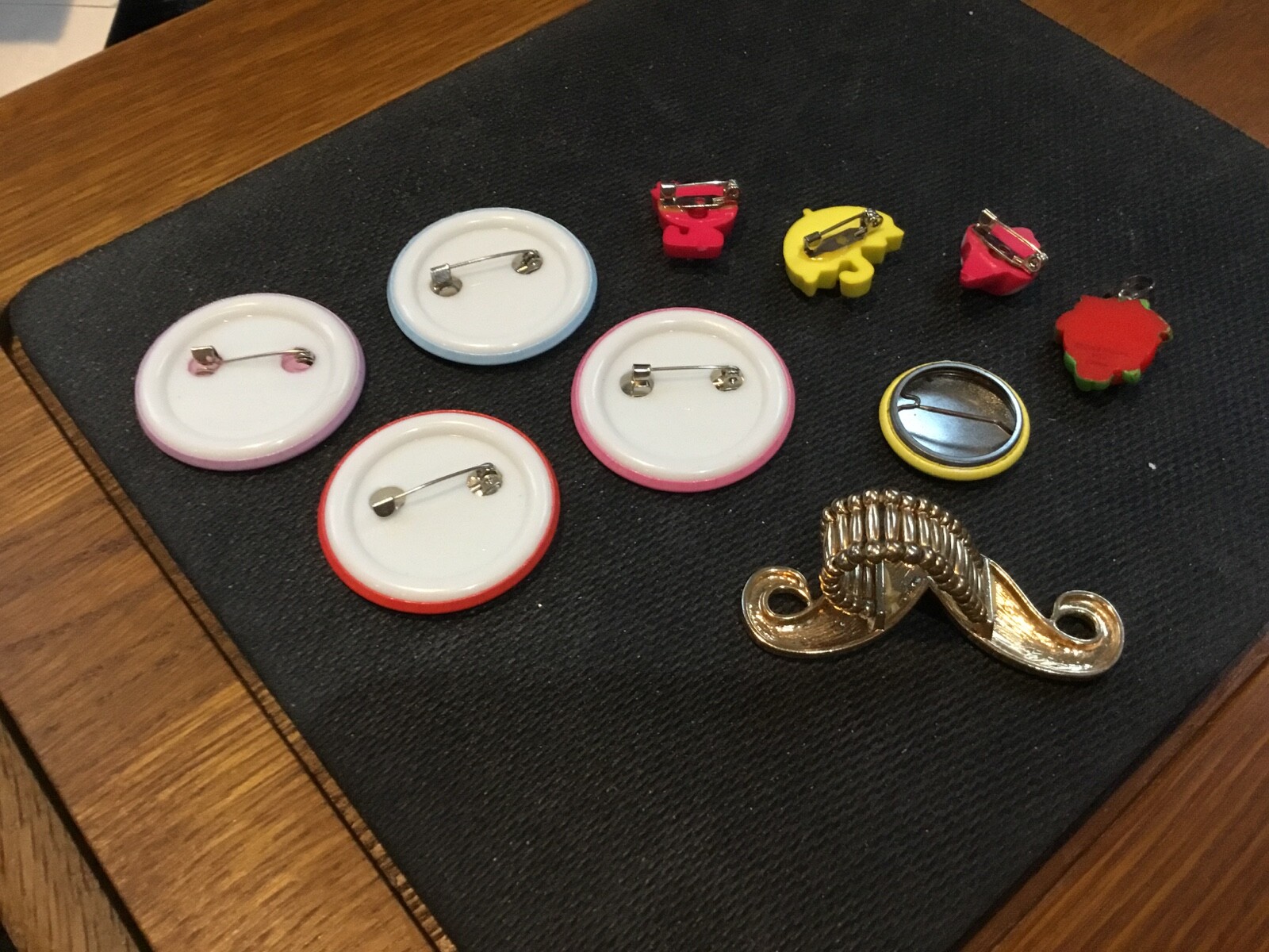 как выглядит TEN KIDS BUTTONS/PINS/MOUSTACHE RING HELLO KITTY ,WALGREENS NINGBO AND MORE фото