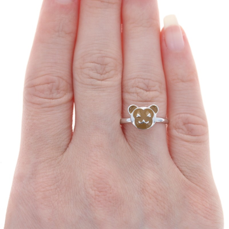 как выглядит Cute Teddy Bear Ring - Sterling Silver Brown Enamel Size 6 3/4 - 7 фото