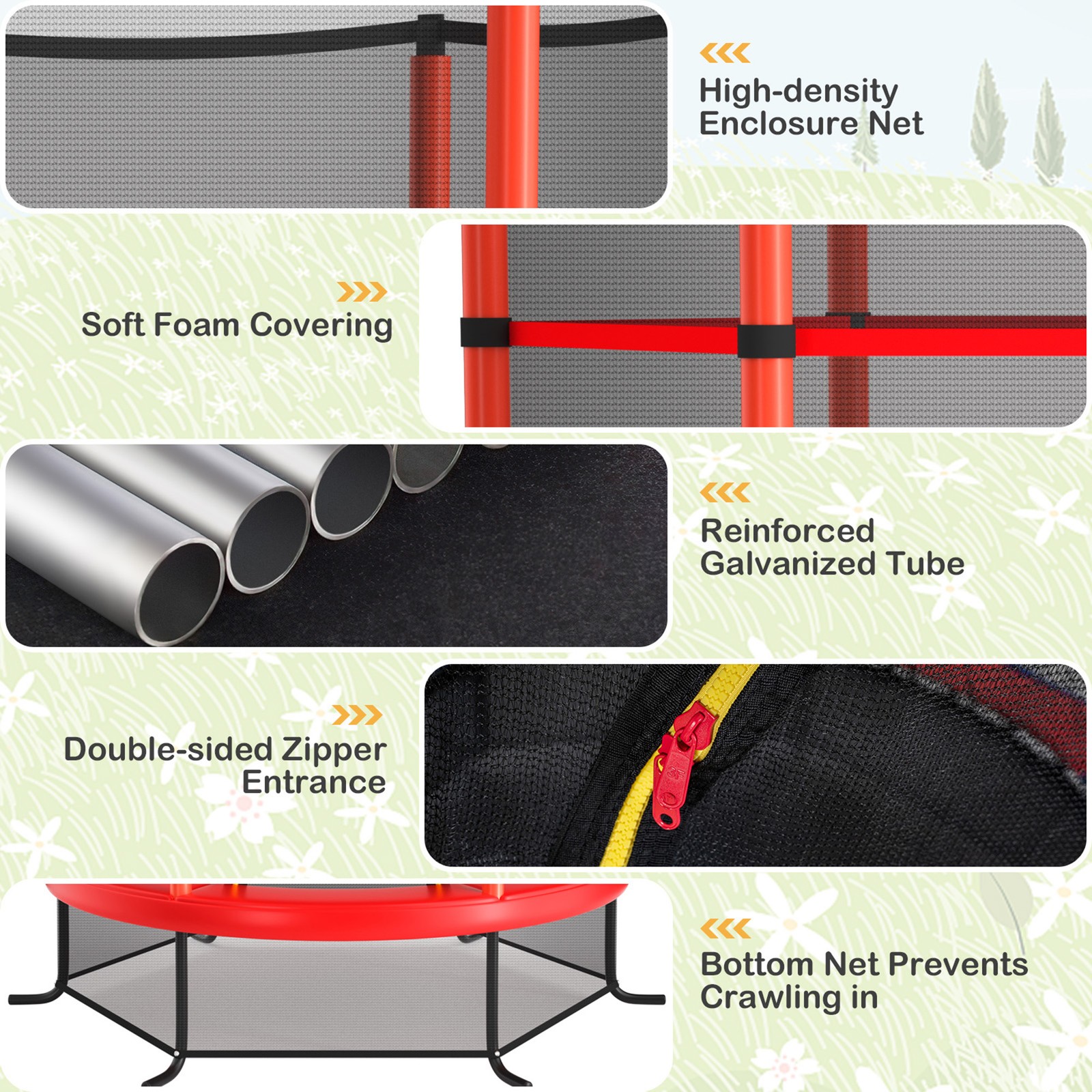 55 Trampoline for Kids Toddler Recreational Trampoline w/ Safety Enclosure Net