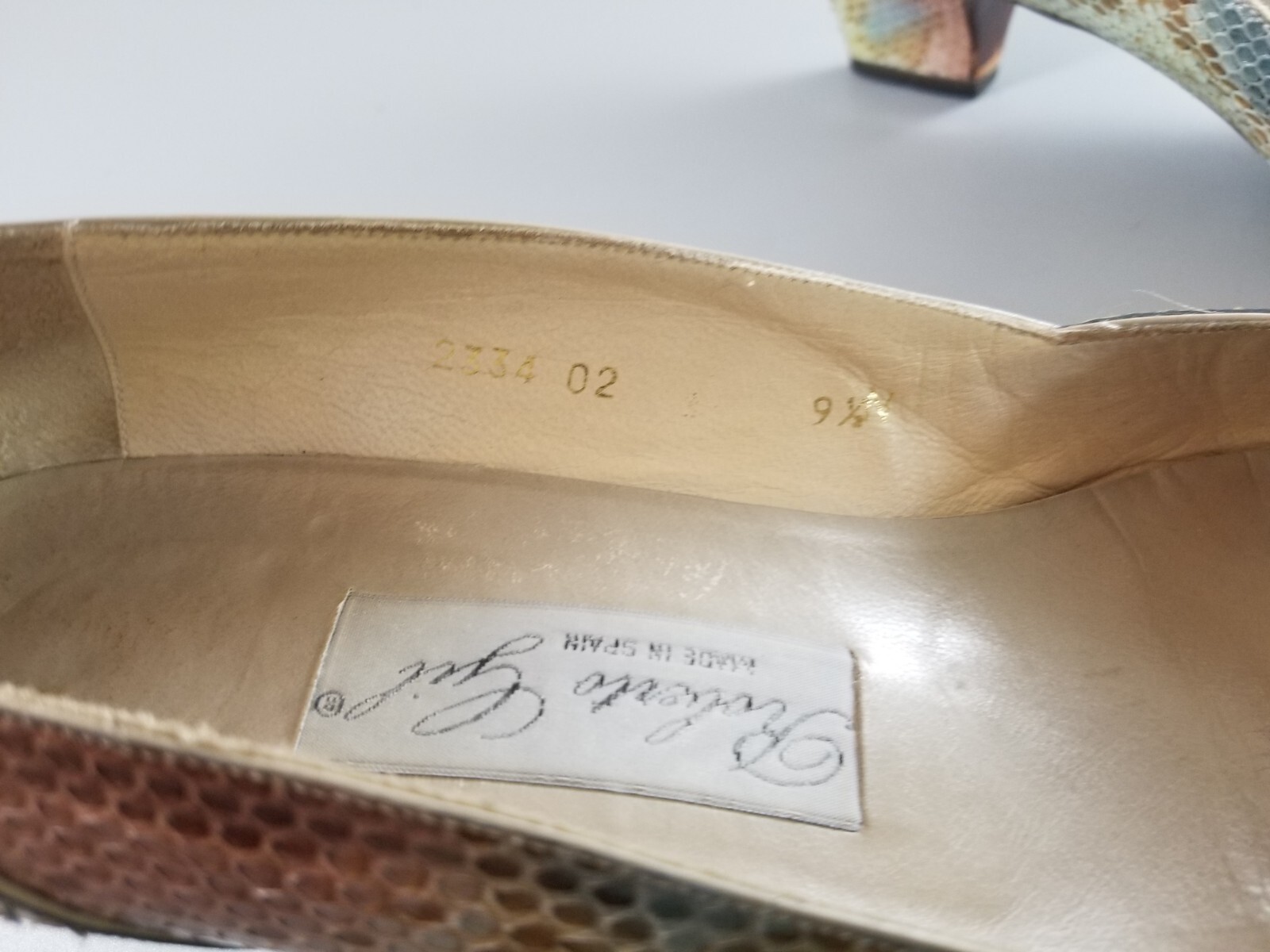 Vintage 80s Roberto Gil Round toe Snakeskin Shoes Heels 9.5 B