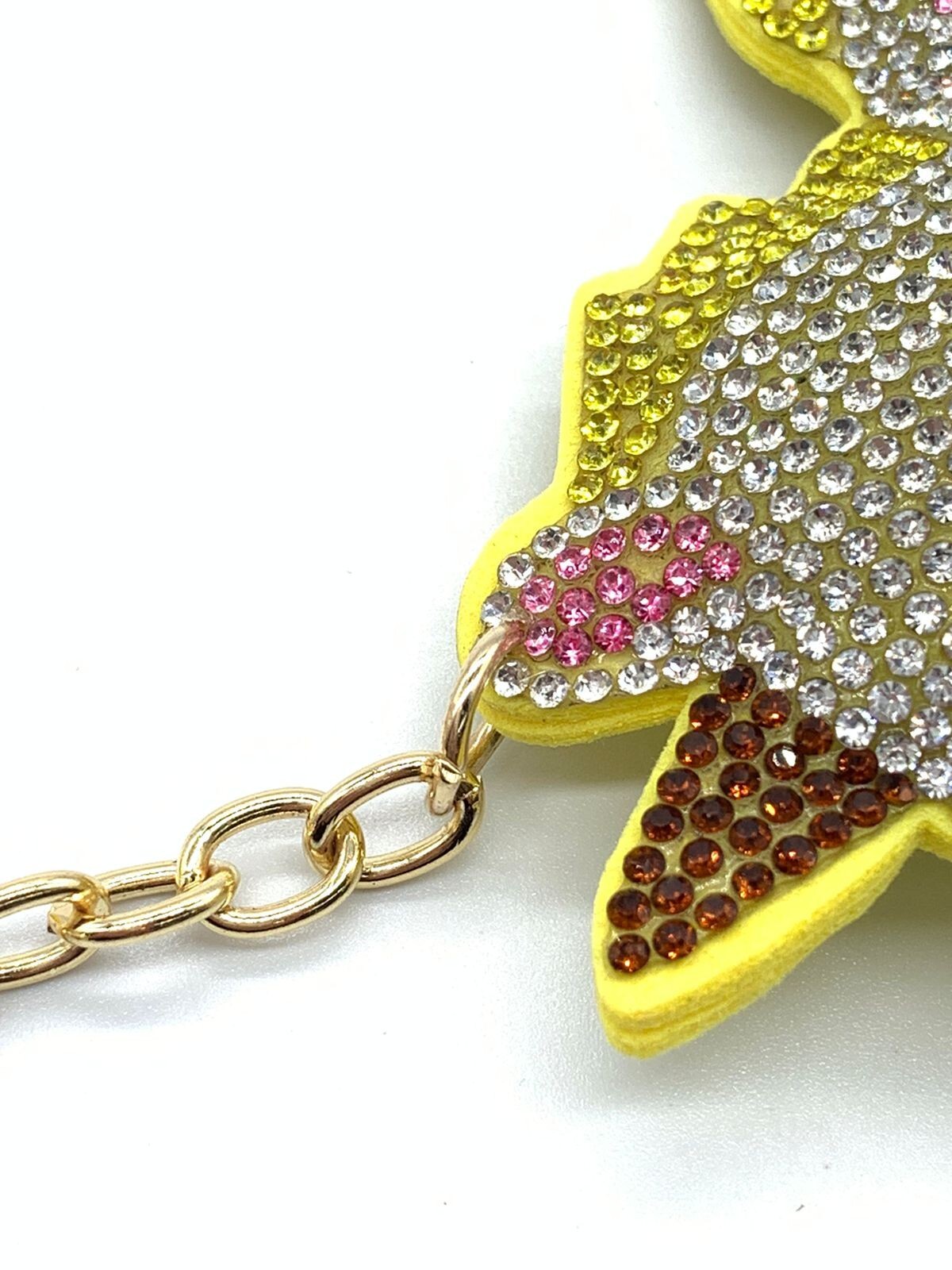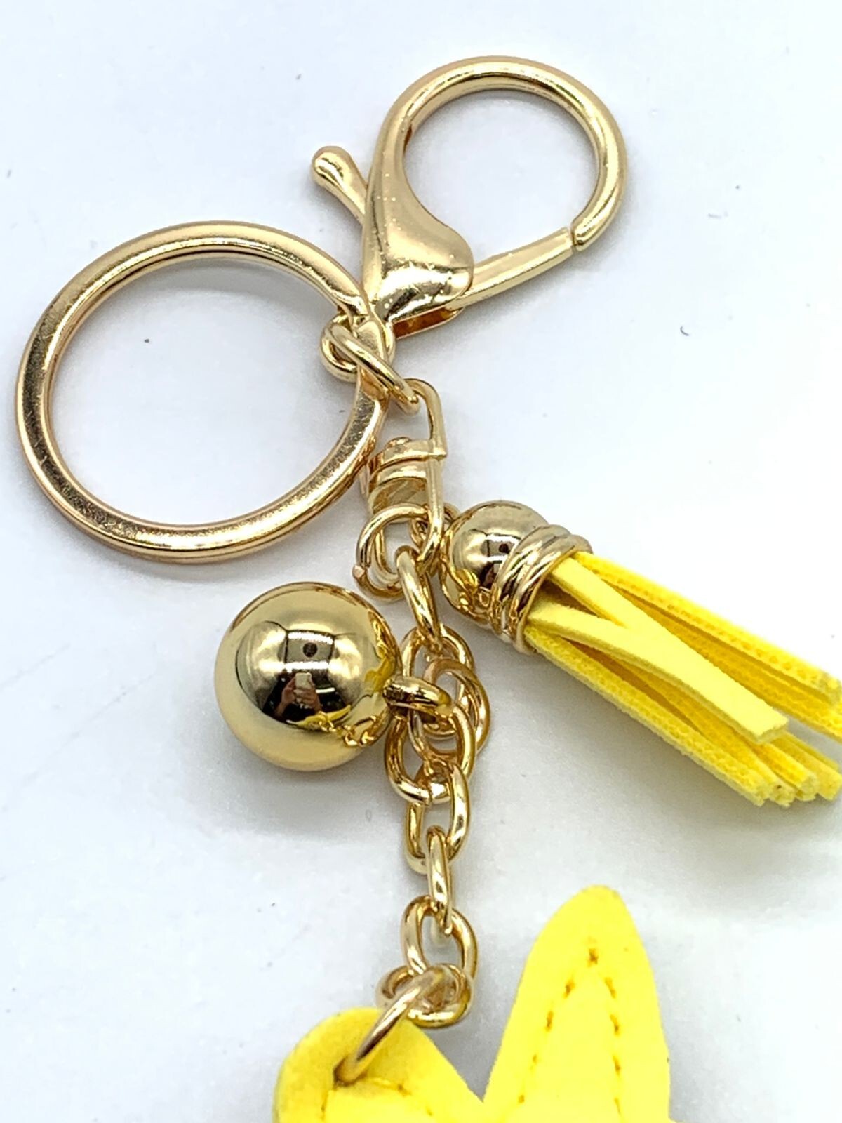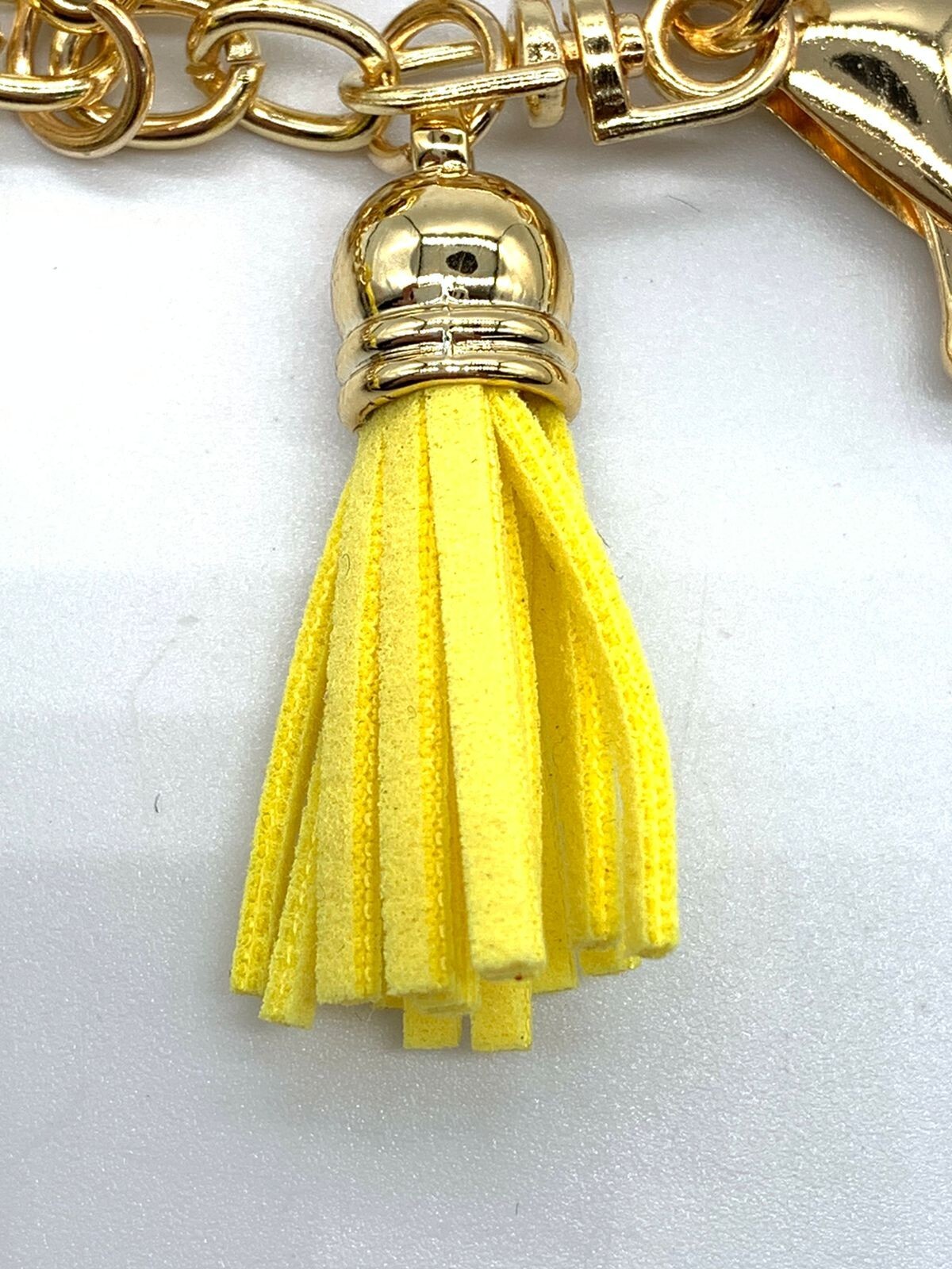 Bling Unicorn Women Girl Keychain Glitter Yellow Tassel Silver Chain Accessory