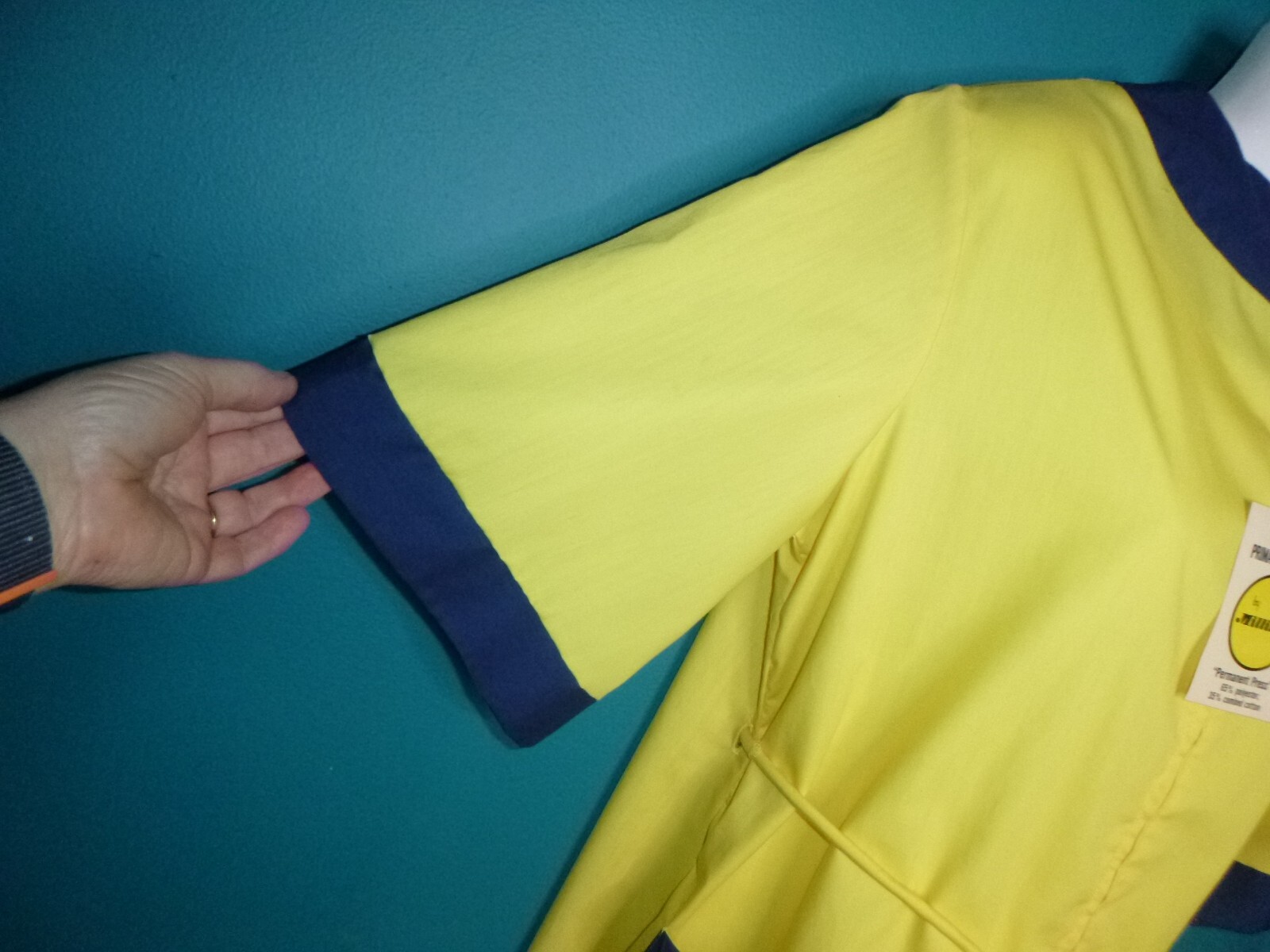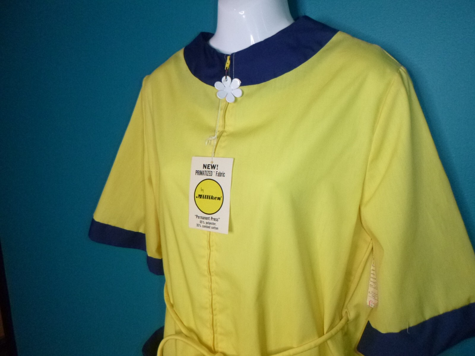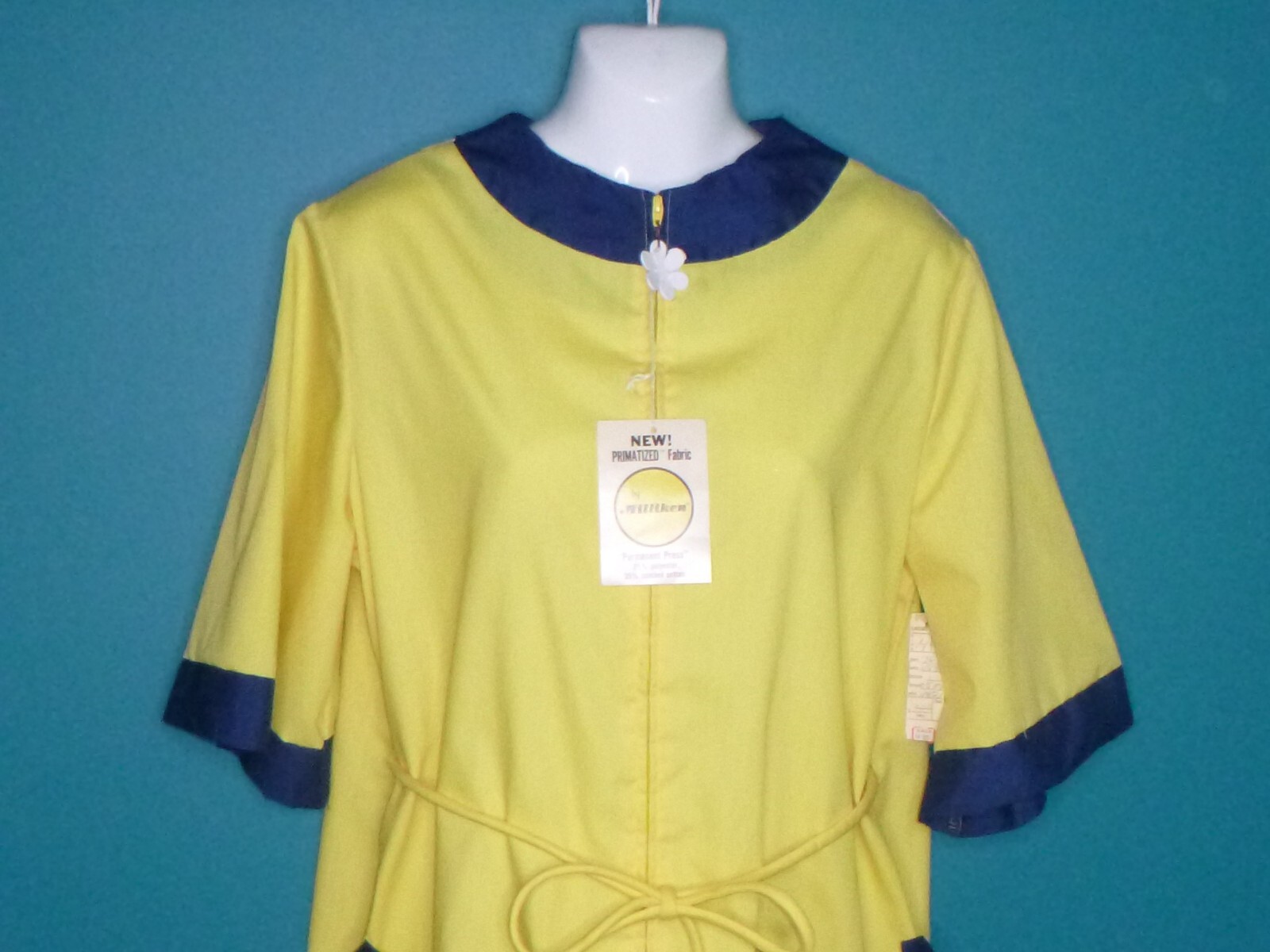 как выглядит NWT Vtg KMart Zip Front Lounger Long Robe Yellow Navy Blue Daisy Pull Size M фото