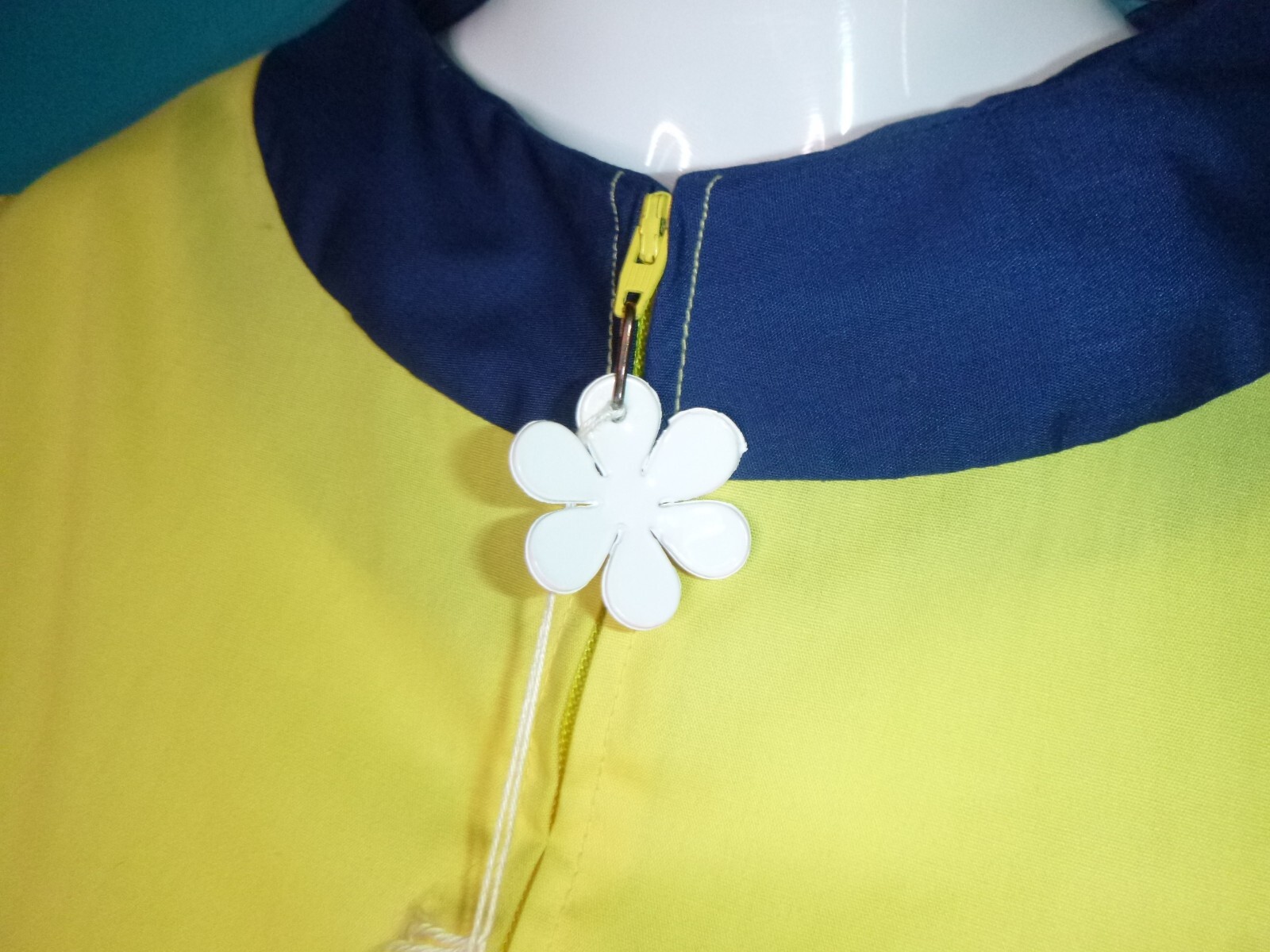 NWT Vtg KMart Zip Front Lounger Long Robe Yellow Navy Blue Daisy Pull Size M