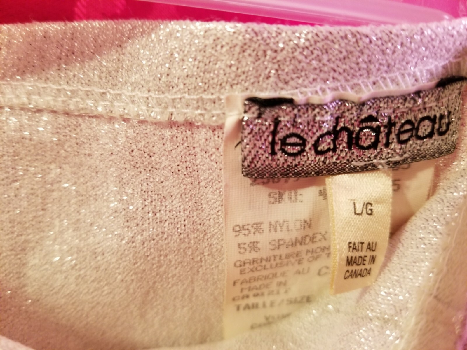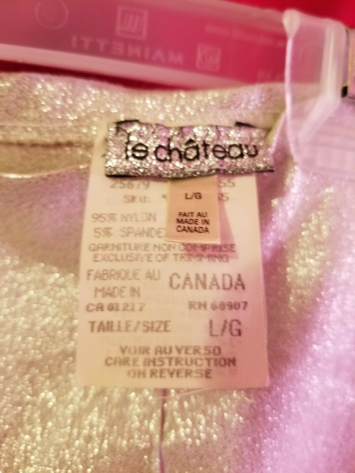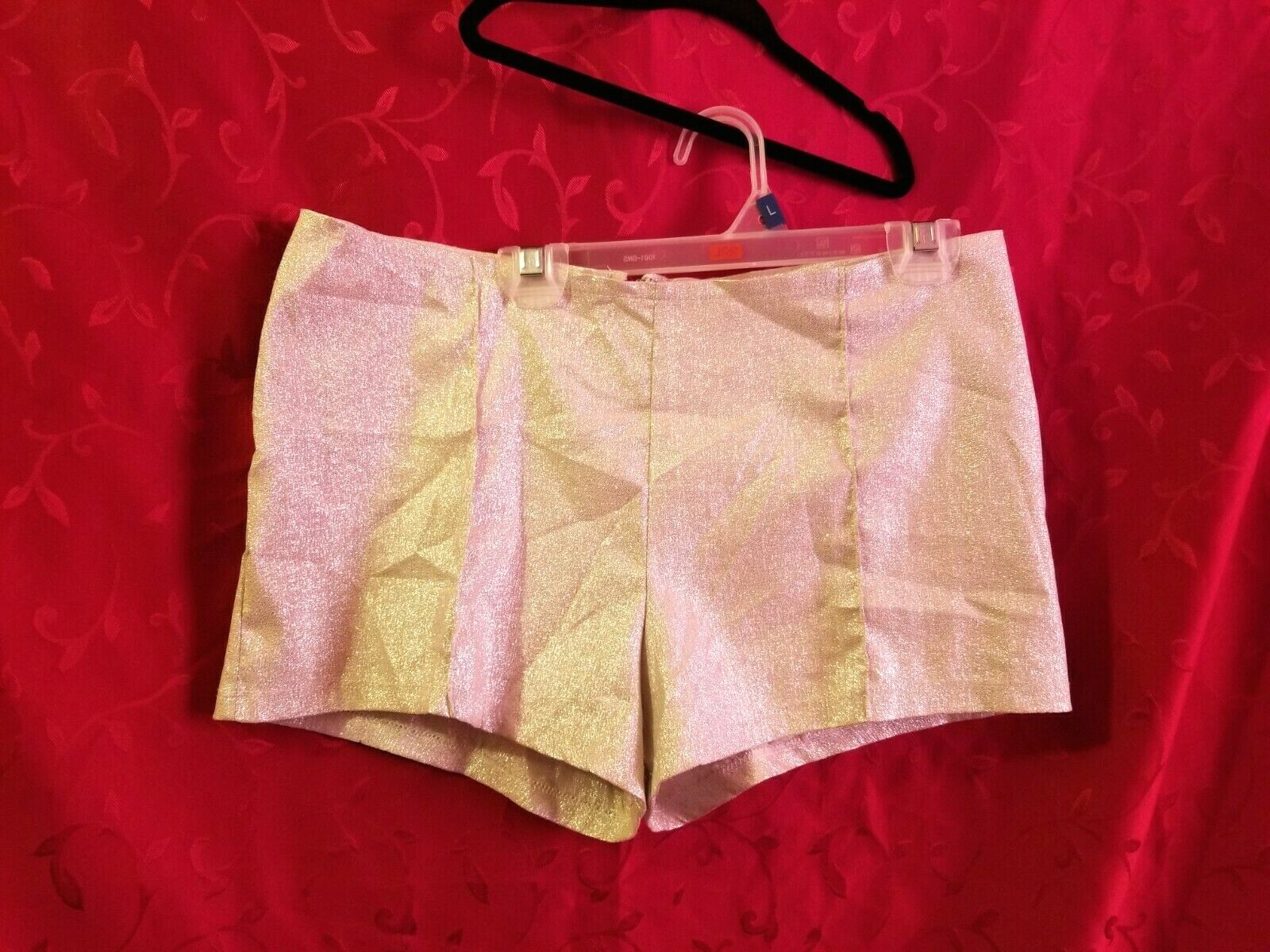 80's Le Chateau Ladies Hot Pants Shorts White Silver Shimmer Size L Womens