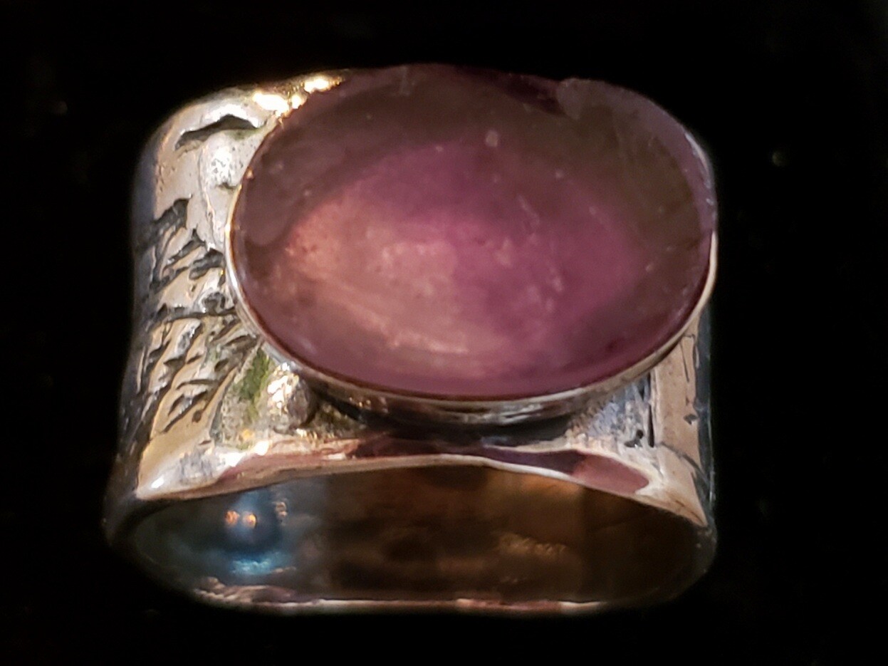 как выглядит Artisan sterling wide band Amethyst ring 7 фото