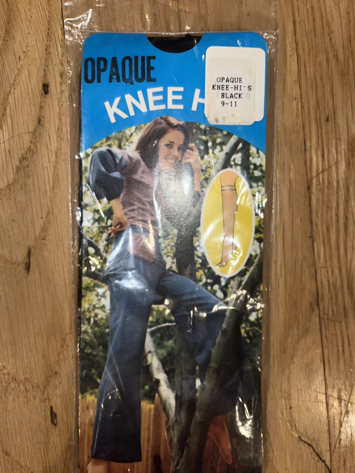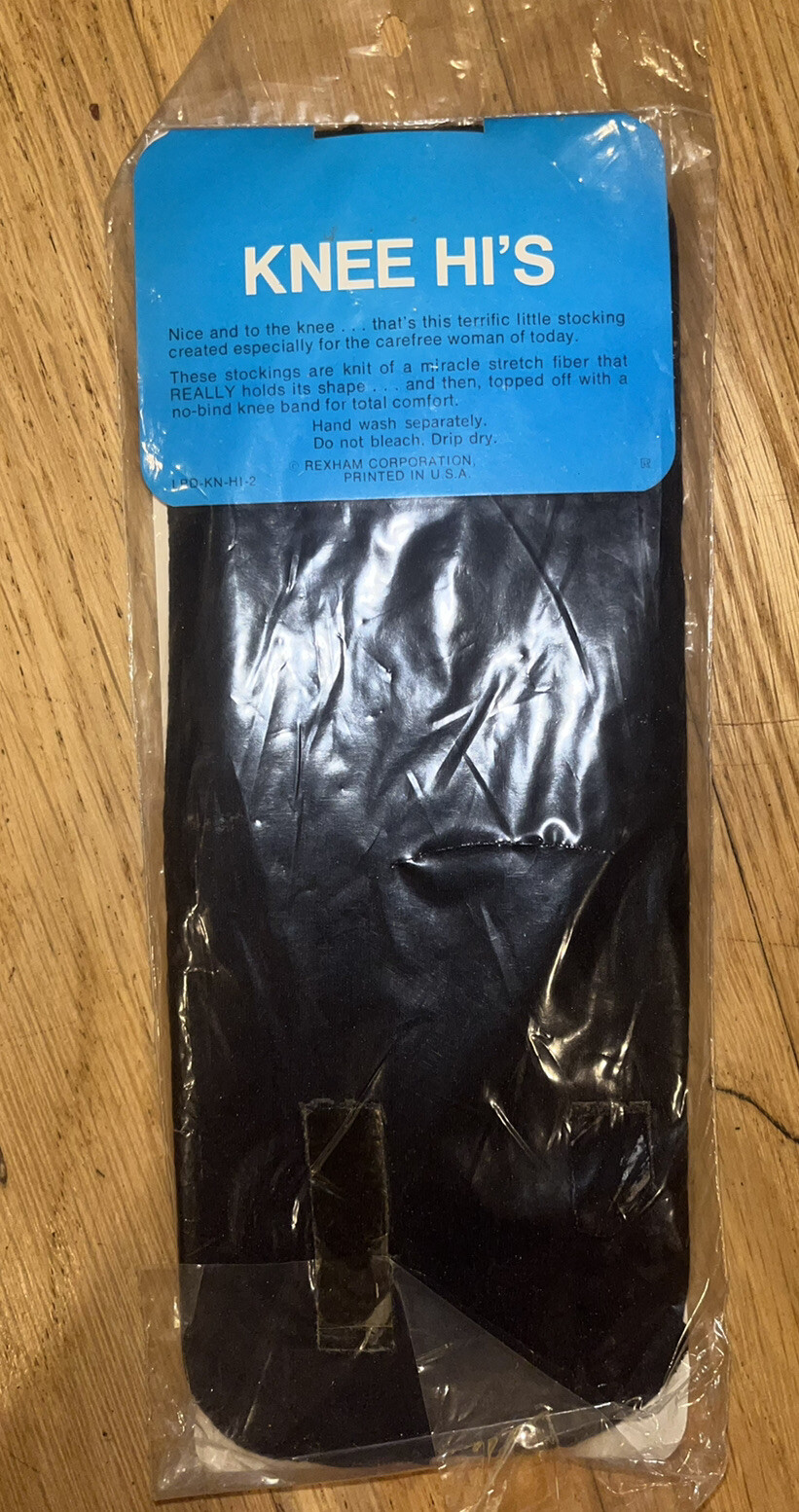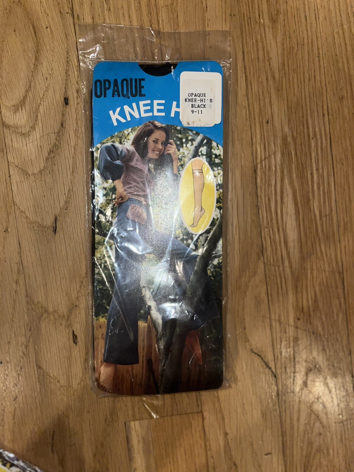 Vintage Opaque KNEE HI'S Black New Old Stock 1973 USA Ladies Stockings 1970s