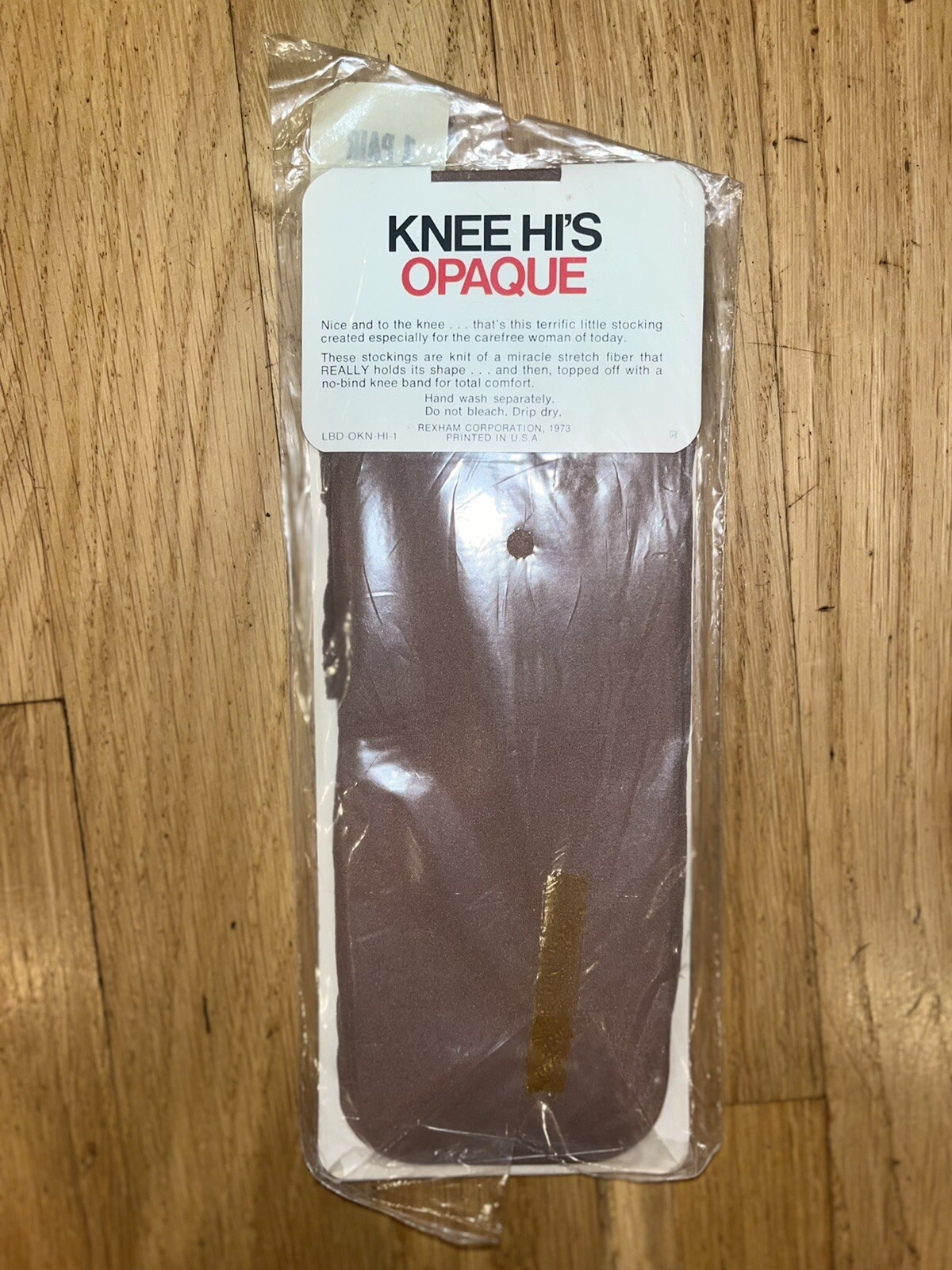 как выглядит Vintage Opaque KNEE HIS Taupe New Old Stock 1973 USA Ladies Stockings 1970s фото