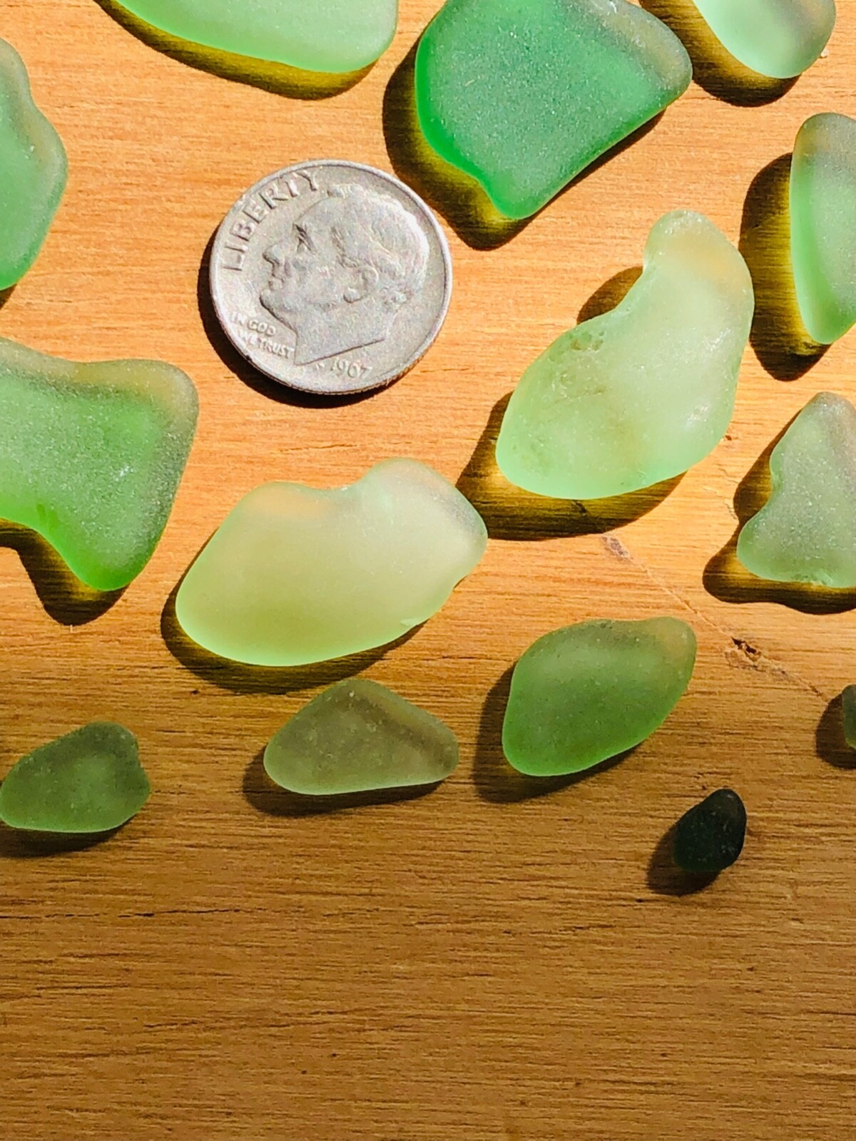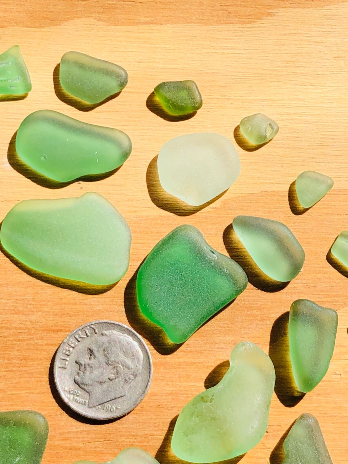 Lot of 33 Partially Machine Tumbled GREENS GRAYS Genuine Sea Beach Glass SM-MED