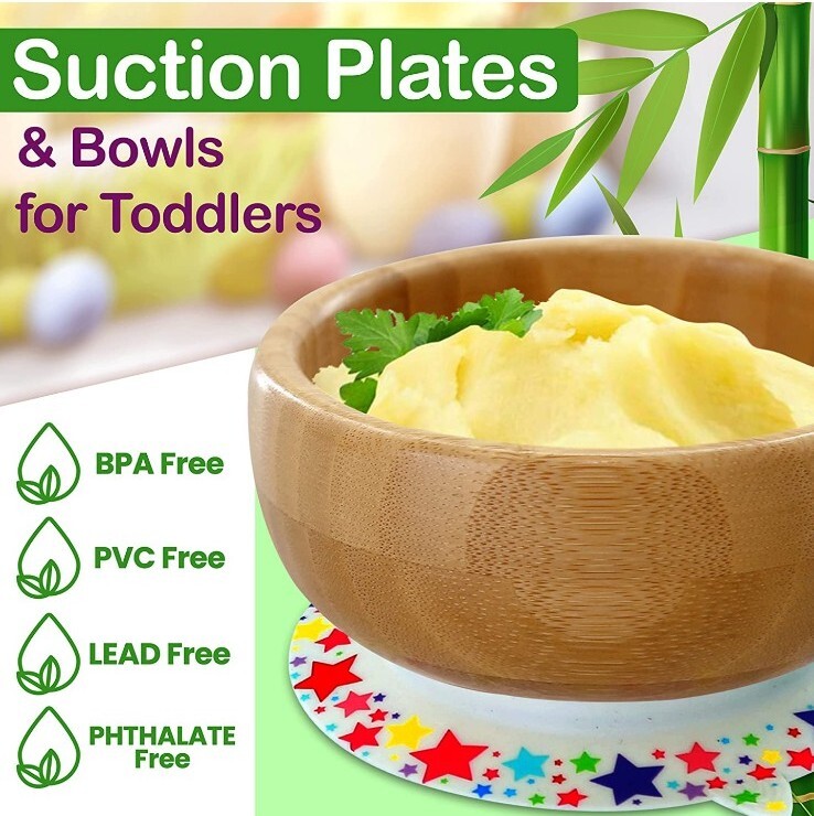 Nutrichef Stars Bamboo Bowl with Silicone Suction Spoon for Baby Toddlers