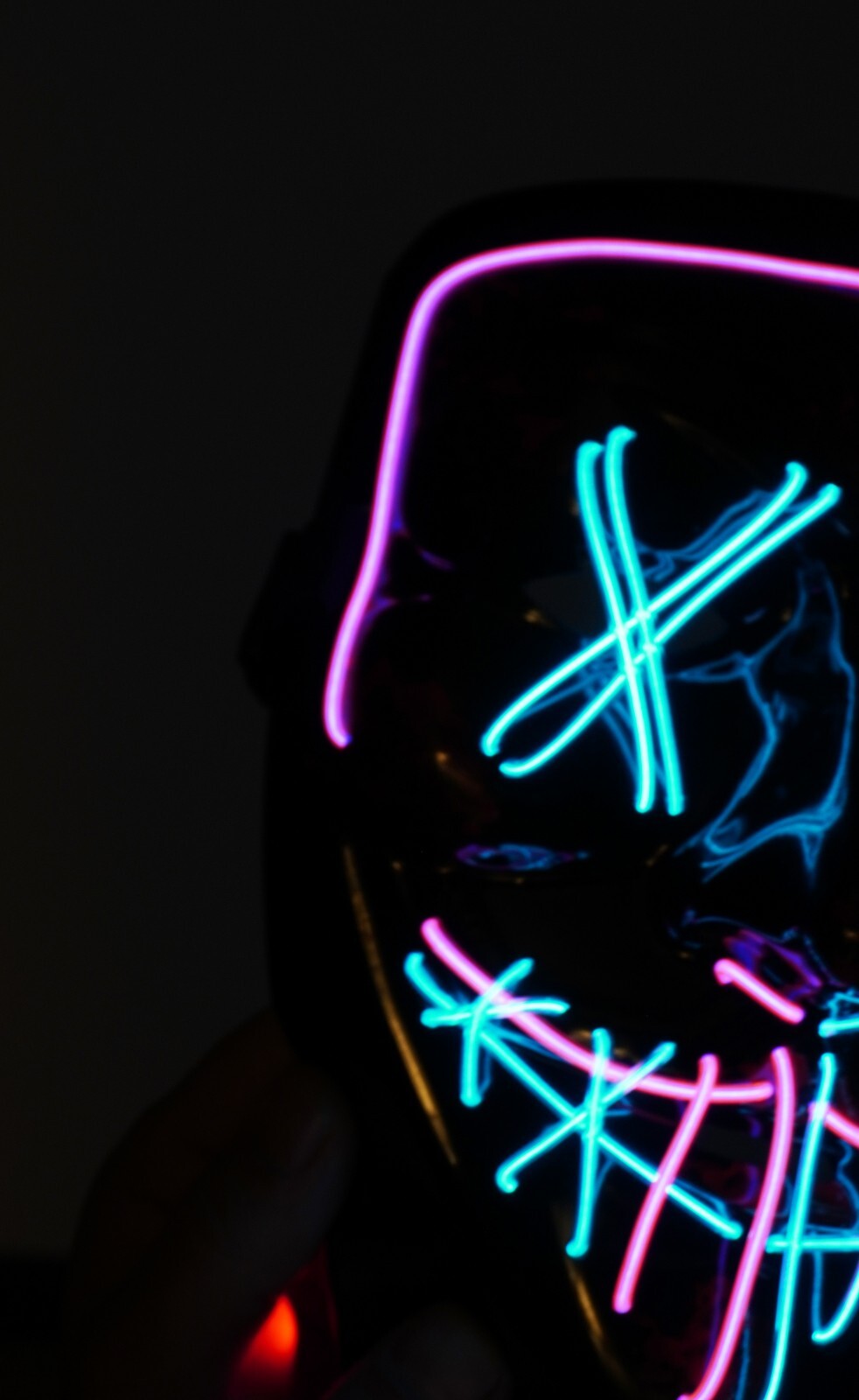как выглядит Light up Halloween Mask Purge EL Wire LED Glow X Eyes Mask Pink Teal фото