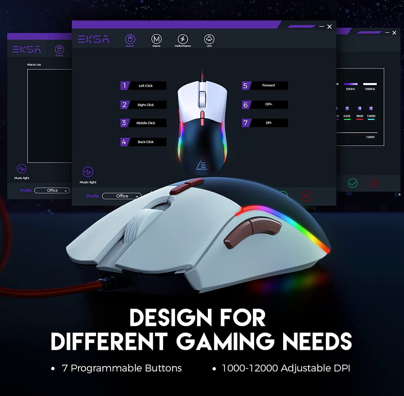 как выглядит EKSA Gaming Mouse, Customizable Black White Computer Mouse, Ergonomic Mouse фото