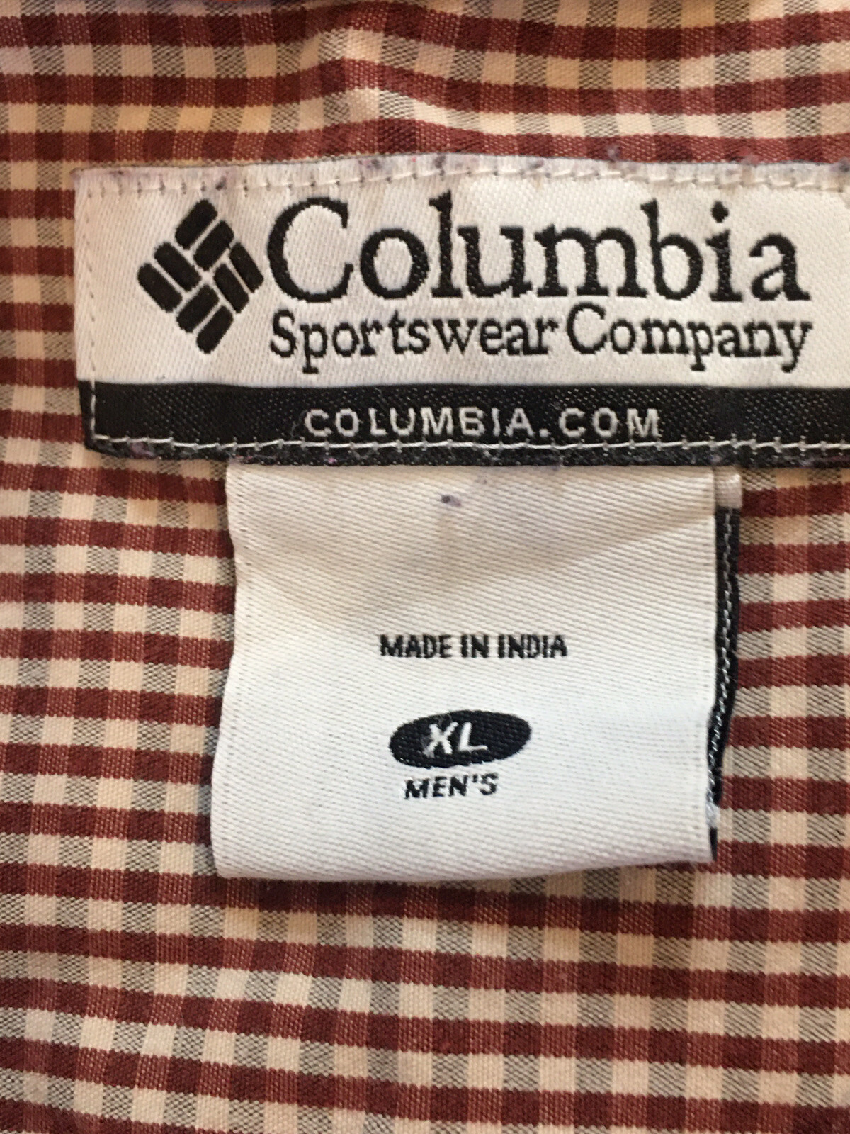 как выглядит Columbia Men Career Dark Red XL Button Front Check Dress Shirt фото