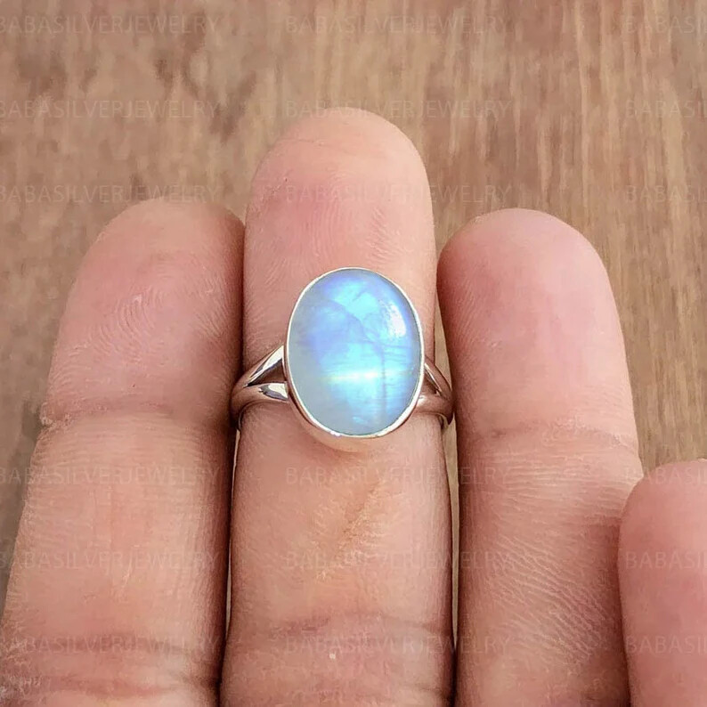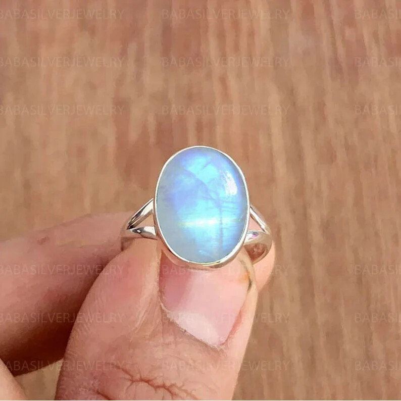 как выглядит Moonstone 925 Sterling Silver Band Statement Ring Handmade Ring All size-b-09 фото