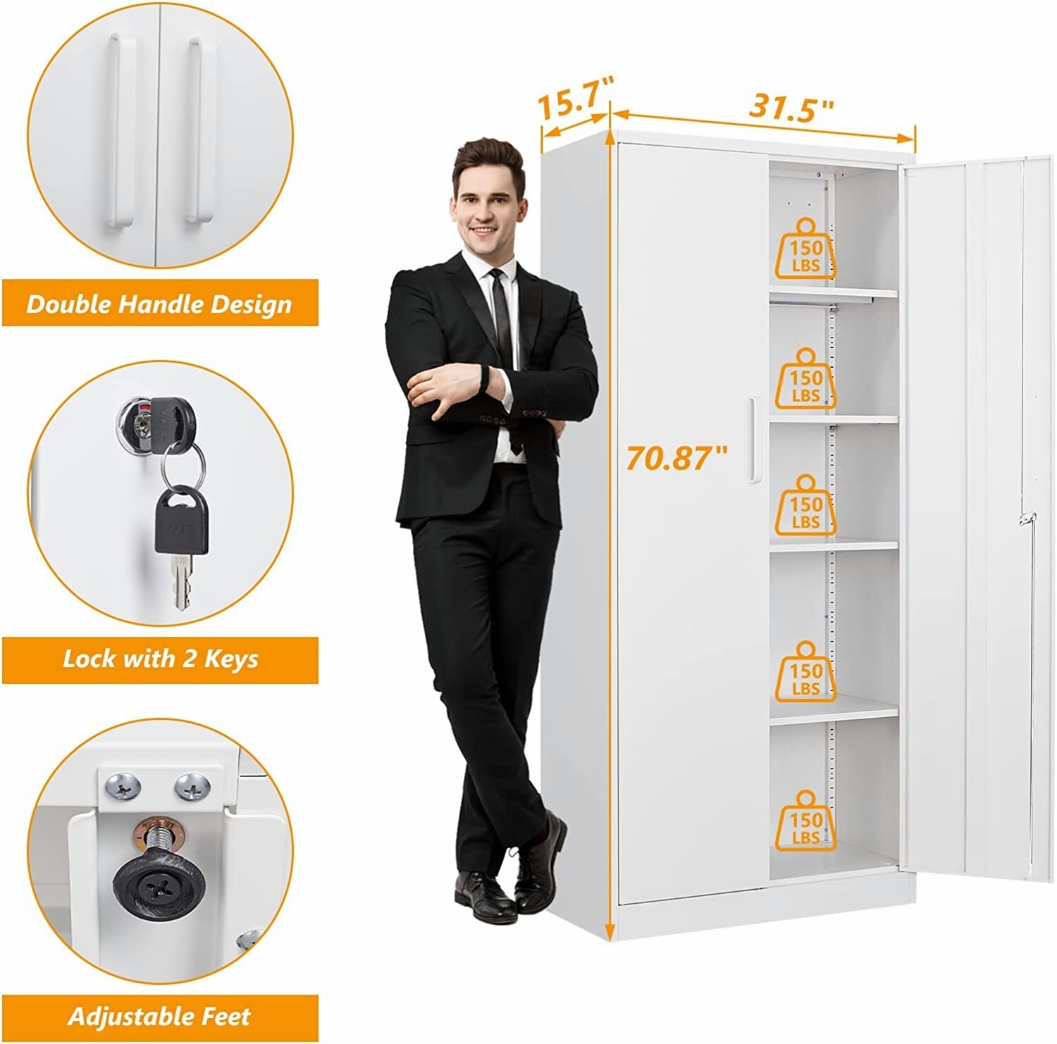 71 Metal Garage Storage Cabinet with Lock For Home, Office, Warehouse, Garage