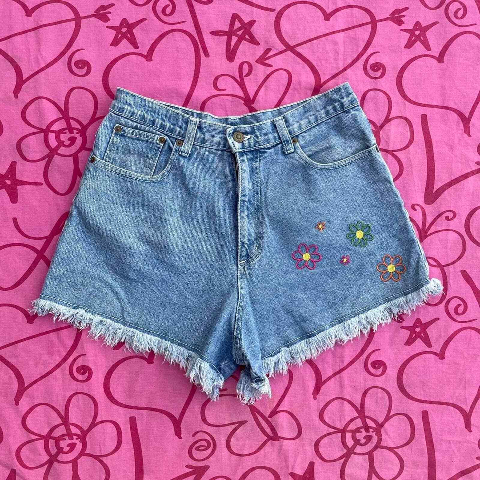 Vintage 90s floral embroidered cut Off Jean Shorts Size 11 29W