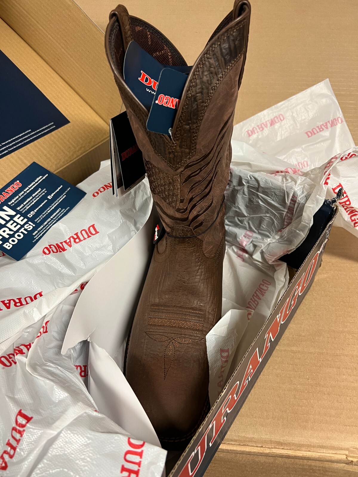 как выглядит Durango Mens Rebel Brown Distressed Flag Square Toe Boot DDB0314 Size 13 фото