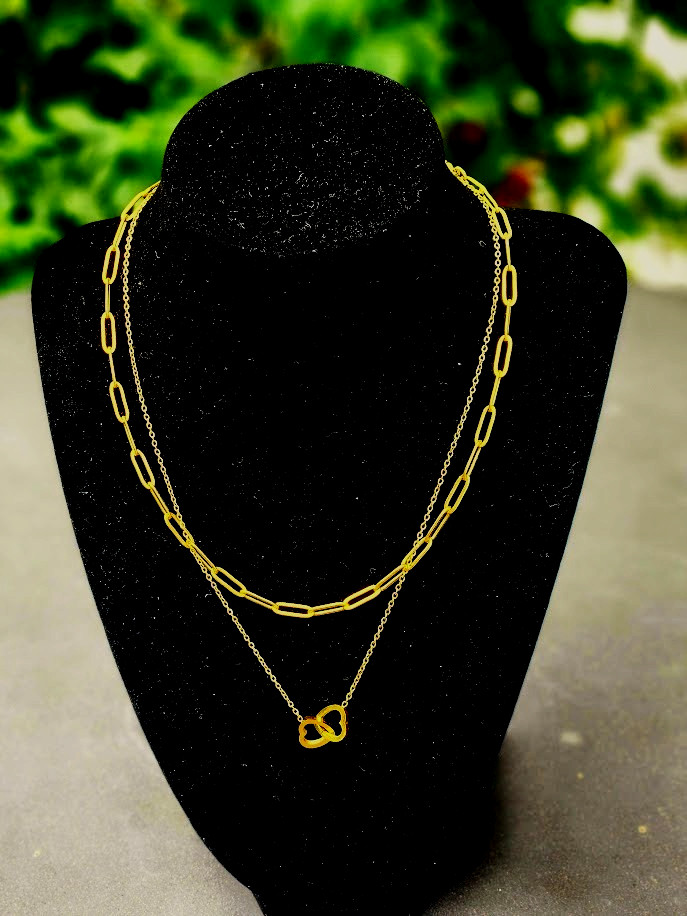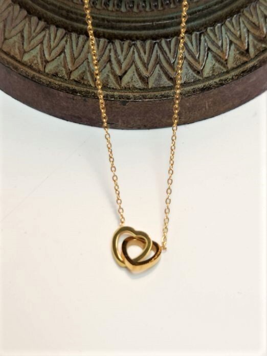 Infinity Connected Heart Necklace Stainless Steel Gold Plated 16 Length