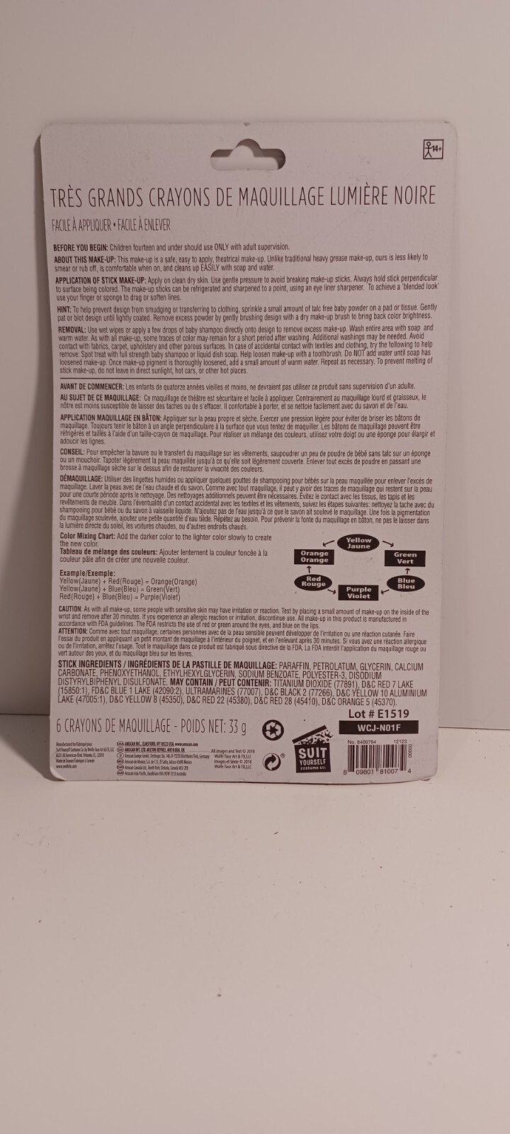Wolf Novelties Jumbo Make-Up Stix 6 Neon/Blacklight Colors