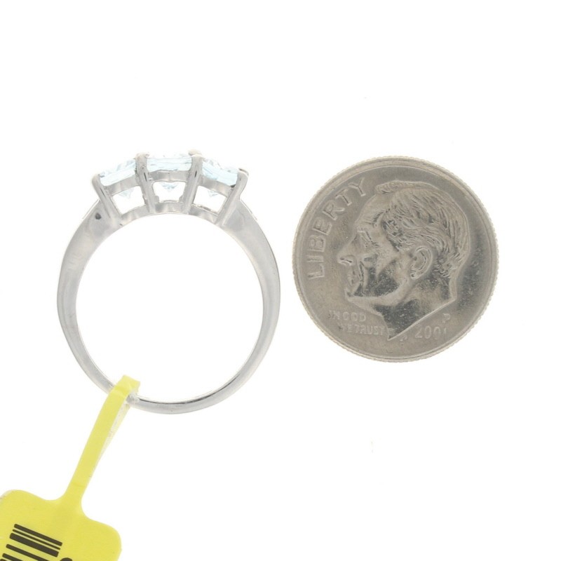 Sterling Silver Aquamarine Diamond Three-Stone Ring - 925 Oval 1.24ctw Size 5